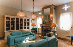 На трех уровнях: три спальни, кинозал, турецкая баня, винный погреб, 6 ванных комнат.