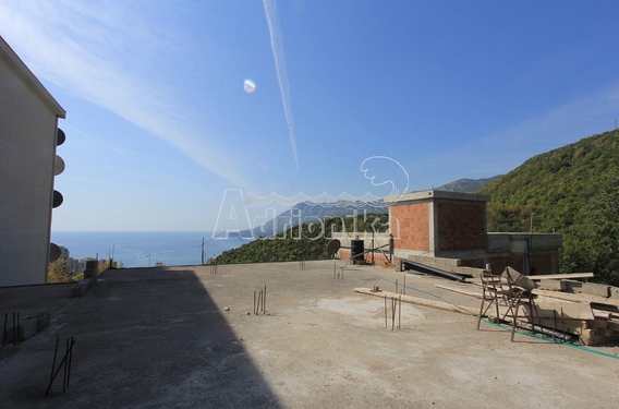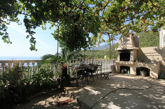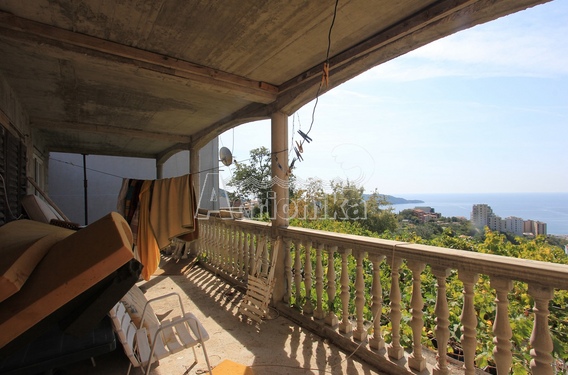 Двухэтажный дом в поселении Ивановичи недалеко от города Будва и популярного курорта Бечичи. Общая площадь дома составляет 168 м2: первый этаж – 51 м2, второй этаж – 117 м2. Площадь участка, на котором расположен дом – 279 м2. На участке также находится гараж 31 м2. Планировка дома: Первый этаж: три апартамента, в каждом из них предусмотрена кухня, спальная комната, ванная комната. Второй этаж находится в процессе грубых работ. Перед домом находится просторная терраса, укрытая от солнца виноградной лозой. Здесь же располагается барбекю. На втором этаже также есть терраса. С обеих открывается уникальный вид на море. Это место для тех, кто устал от шума больших городов, для тех, кто хочет уединиться с природой и буквально подняться над суетой мира.