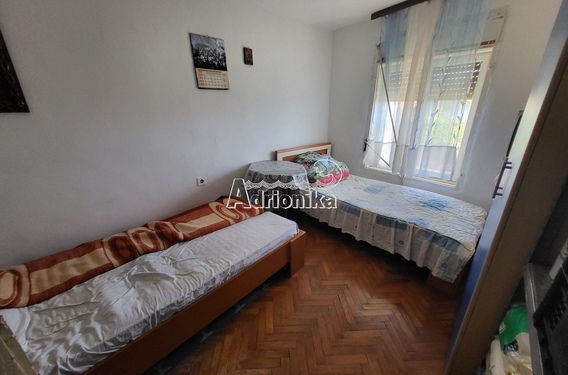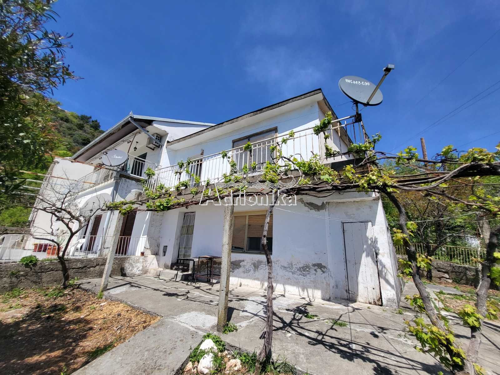 Продается дом в Будве с прекрасным видом на море и город. Площадь дома 80 м2, а площадь участка, на котором он расположен, 150 м2. Планировка дома: Первый этаж: прихожая, гостиная, спальня, ванная комната. Второй этаж: кухня, гостиная, спальня, ванная комната, терраса. С террасы открывается панорамный вид на море и город. Во дворе растут фрукты и виноградник. Дом нуждается в ремонте и продается с частичной мебелью. Расстояние до пляжа 1500 метров.