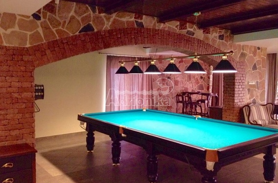 На первом уровне: гостиная с бильярдным столом (профессиональный стол), винотека, кабинет, техническое помещение, wc.