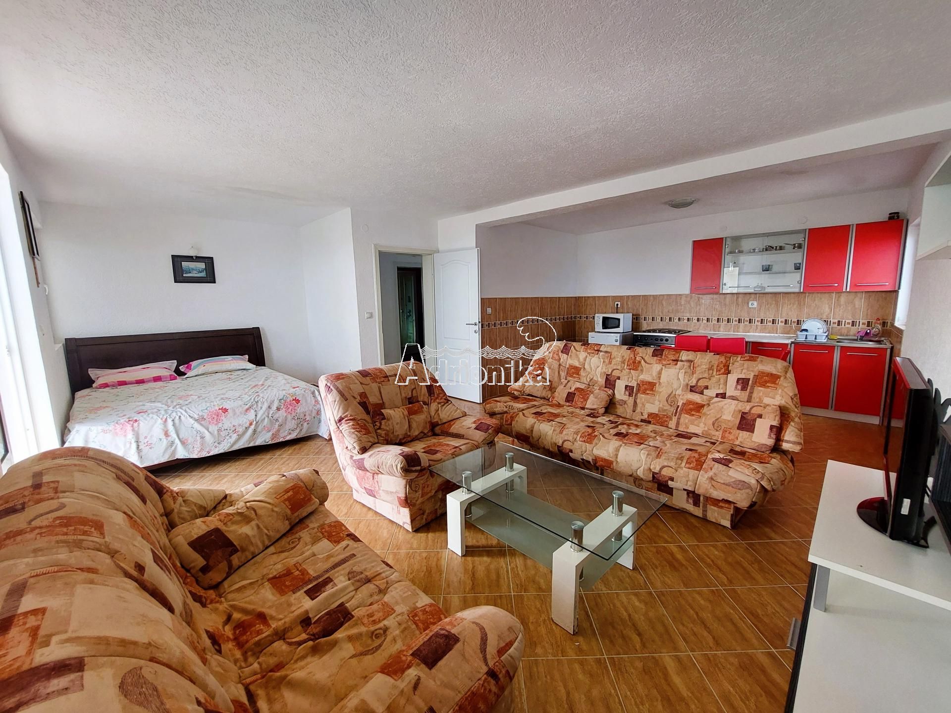 Из гостиной есть балкон с видом на поселок Добра Вода и море.