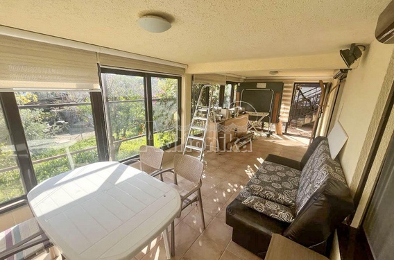 Большая застекленная терраса, кухонная зона, спальня, с/у.