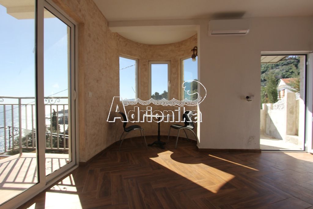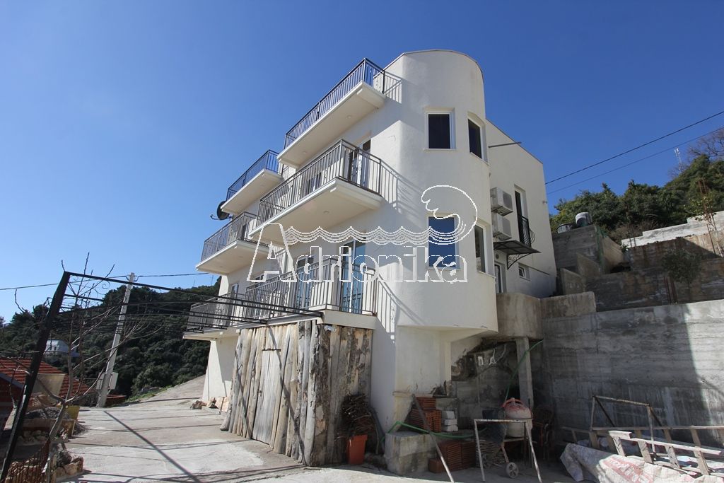 Современный дом в Добре Воде, недалеко от города Бар. Площадь дома составляет 200 м2, а площадь участка, на котором он расположен, – 366 м2. План дома: на первом этаже расположена кладовка; на втором этаже находятся двое апартаментов, каждый из которых состоит из кухни, спальни, ванной комнаты и терассы с панорамным видом на море; на третьем этаже такж находятся двое апартаментов, каждый из которых имеет кухню, совмещенную с гостиной, спальную комнату, ванную комнату и террасу с панорамным видом на море. Дом оснащён системой кондиционирования, а также имеется система тёплых полов. Участок, на котором расположен дом, каскадный, в связи с этим подъезд к дому возможен, как с нижней стороны, так и с верхней. Предусмотрена парковка на 3 автомобиля. Недалеко от дома находится всё необходимое: магазины, рестораны, аптеки –, а до города Бар всего 10 минут пути на машине. До моря расстояние составляет 380 метров. В данный момент ведуться работы по обустройсву апартаментов и облагораживанию двора.