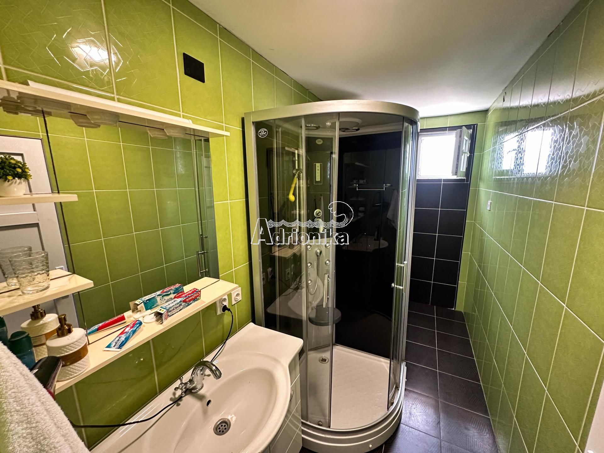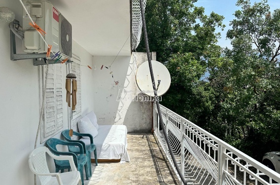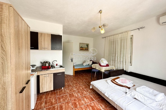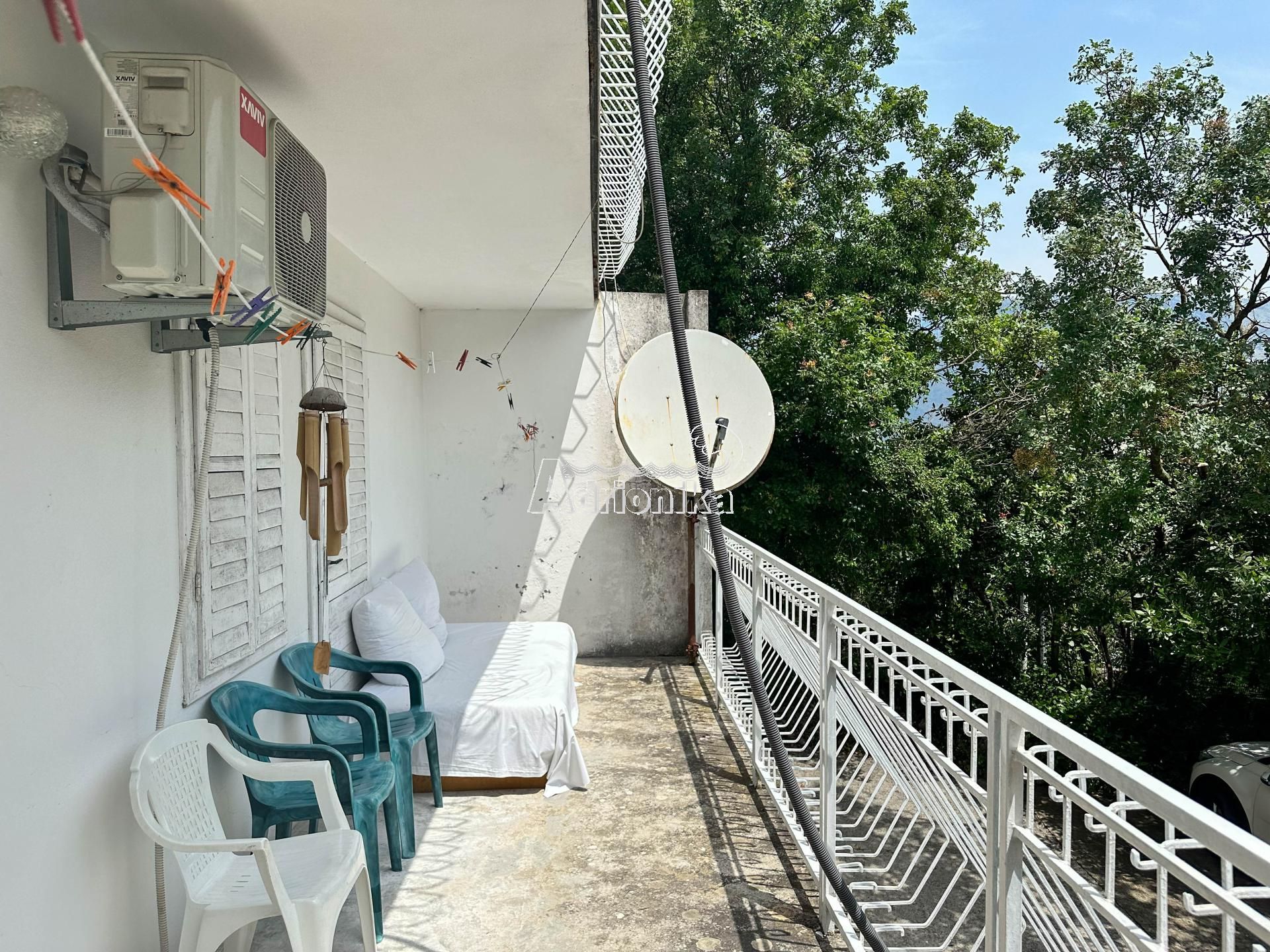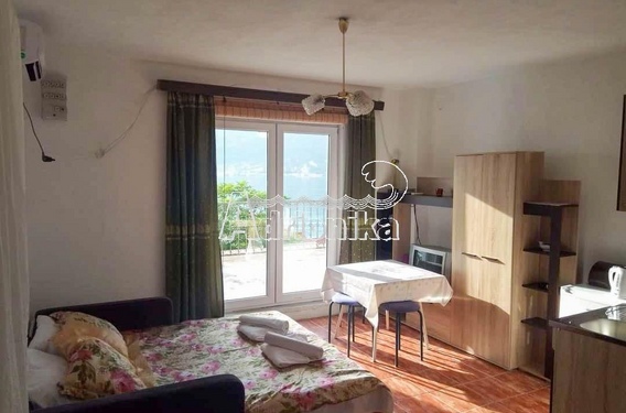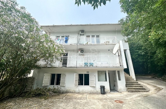 Дом расположен выше шоссе и окружен красивой зеленью. Каждый этаж, кроме первого, имеет вид на море. Расстояние от моря менее 50 метров.