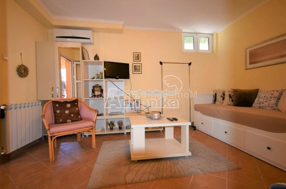 Внизу находятся две квартиры по одной спальне в каждой. У них свой выход во двор и вид на море. Так же есть детально отреставрированный трактир с подсобным помещением и выходом в сад, где расположен роштиль и большой каменный стол.
