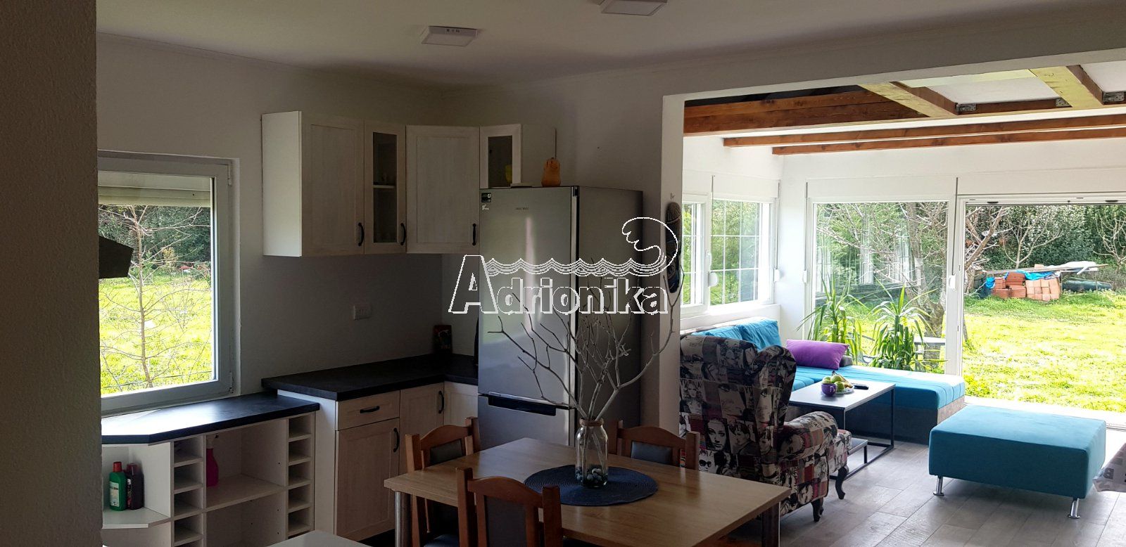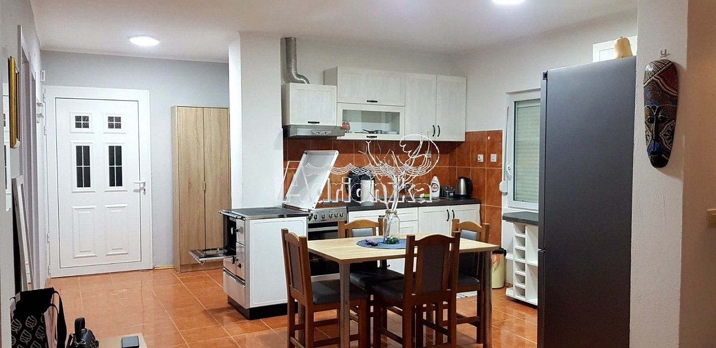 Комфортабельный дом в Зеленике недалеко от Герцег-Нови. Площадь дома 76 м2, площадь участка 950 м2. План дома: • на первом этаже кухня, совмещенная с гостиной, две спальни, санузел; • на чердаке большая спальня Дом полностью меблирован и оборудован всей необходимой бытовой техникой. Дом также оборудован кондиционером, который будет охлаждать дом летом и обогревать зимой. Из окон и террасы открывается прекрасный вид на горы. Расстояние от моря 1800 метров.