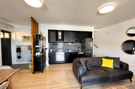 - на первом этаже есть гостиная с кухней и столовой, а также терраса с прекрасным видом на море,
