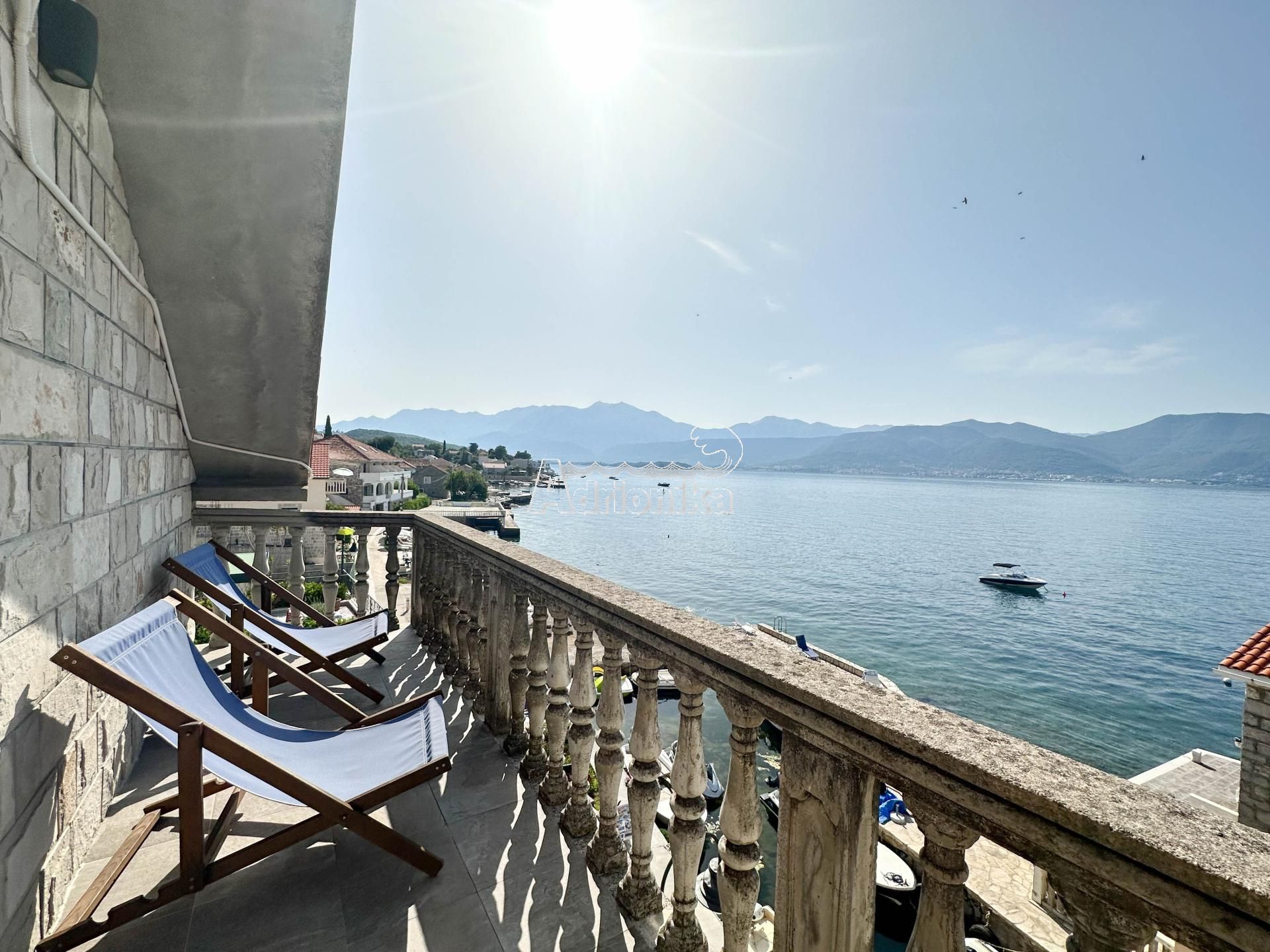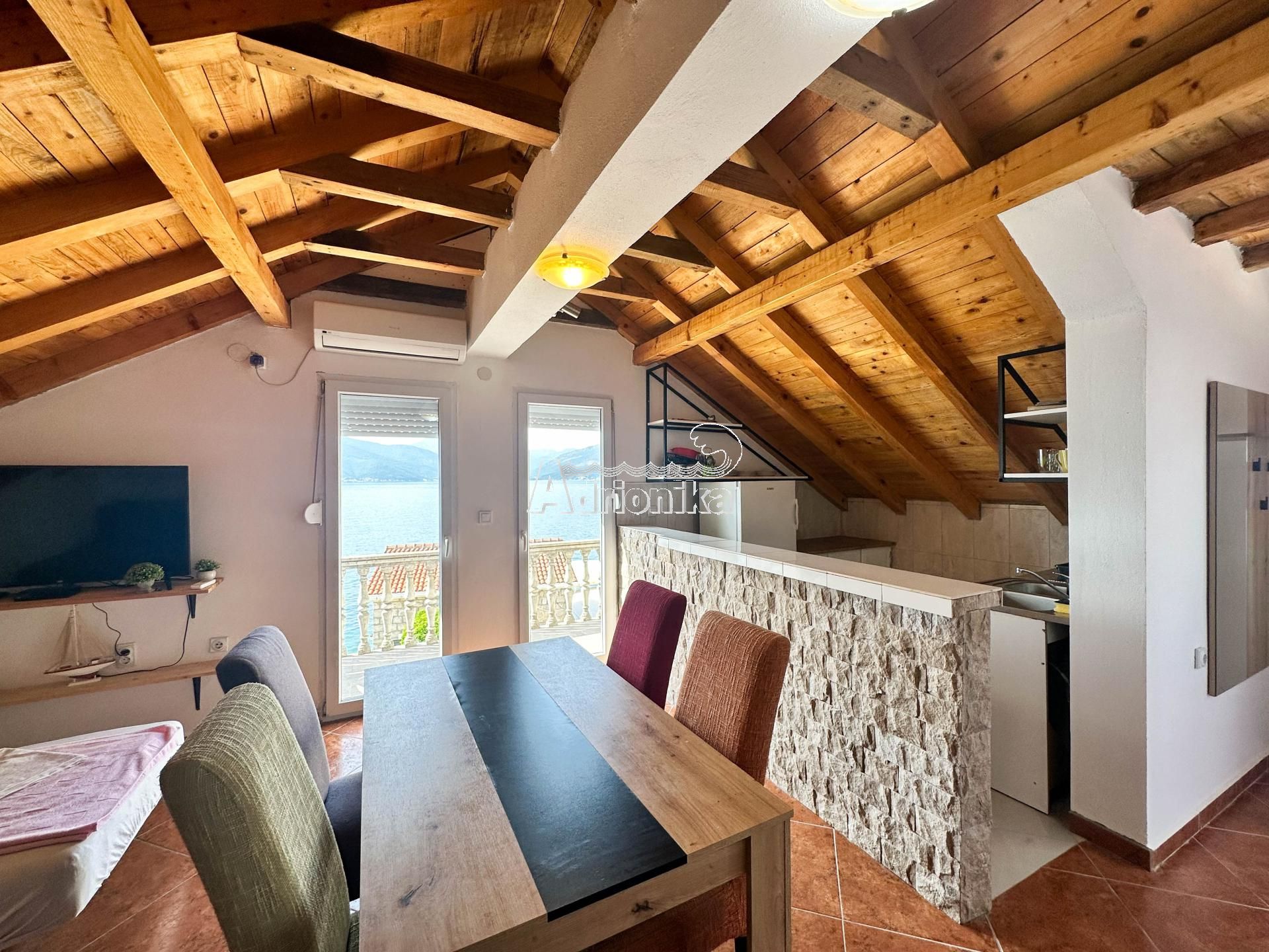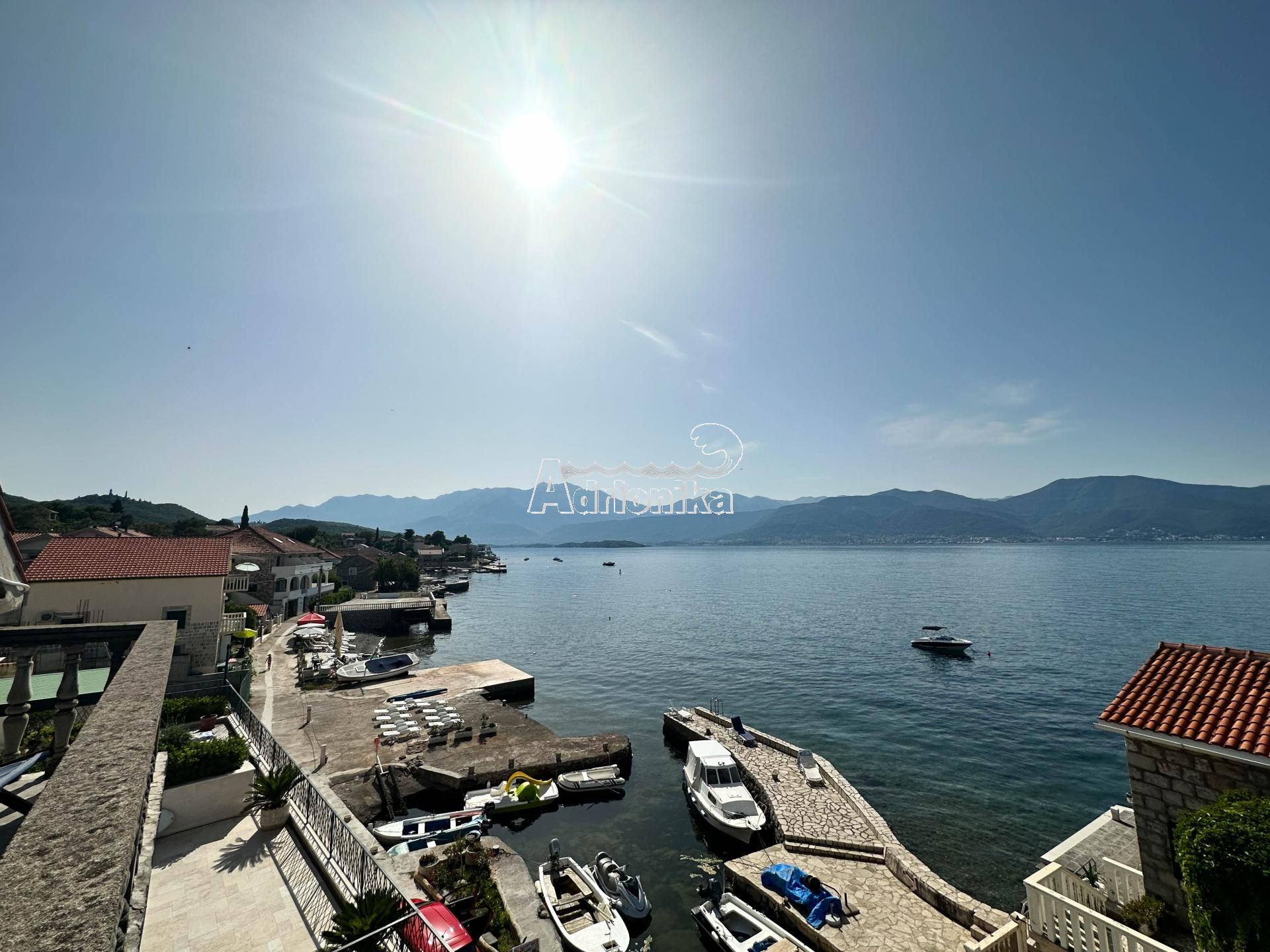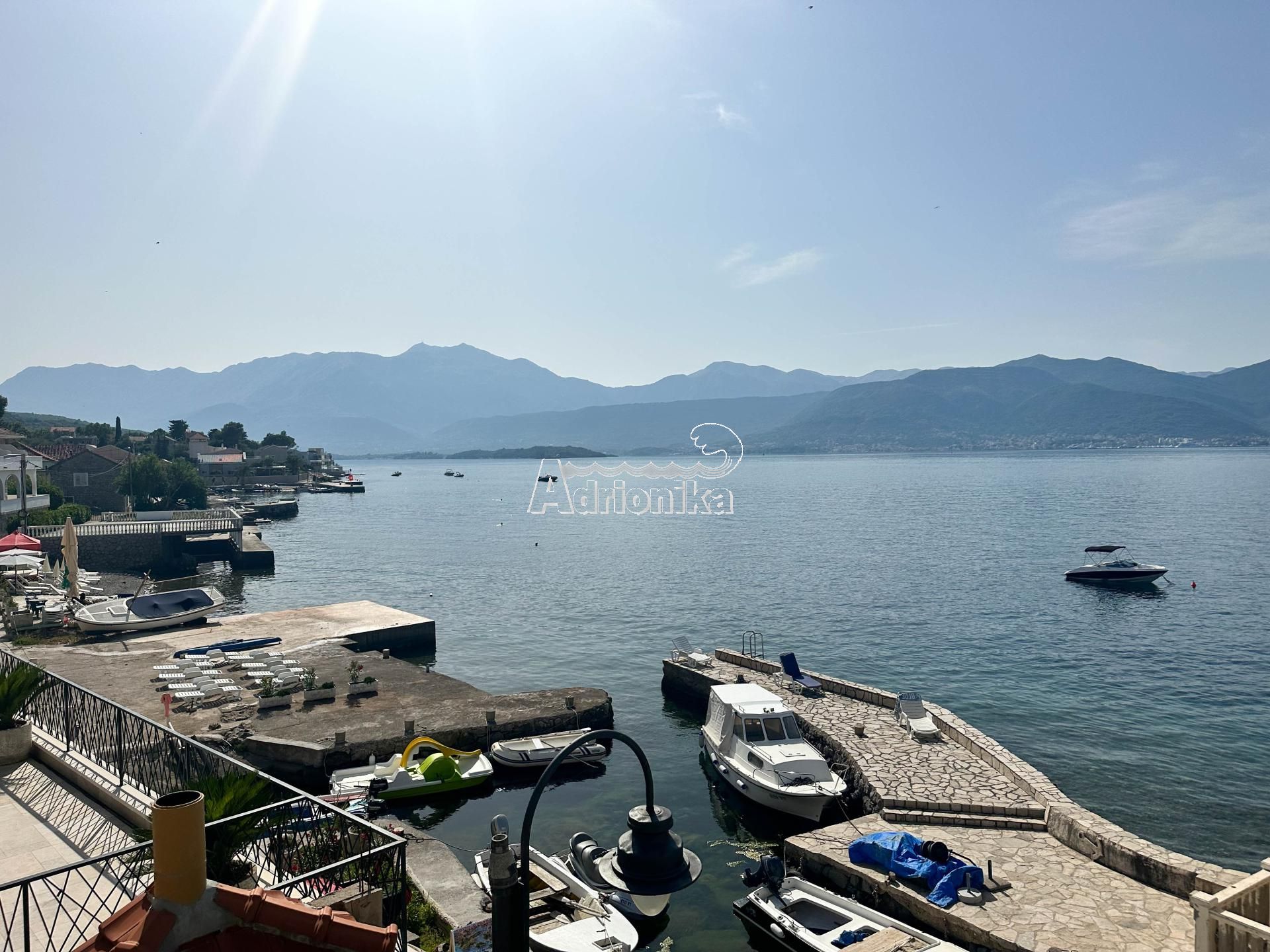 Расположение отличное, на первой линии красивой набережной в Крашичи. Лодку можно пришвартовать у понтона перед домом.