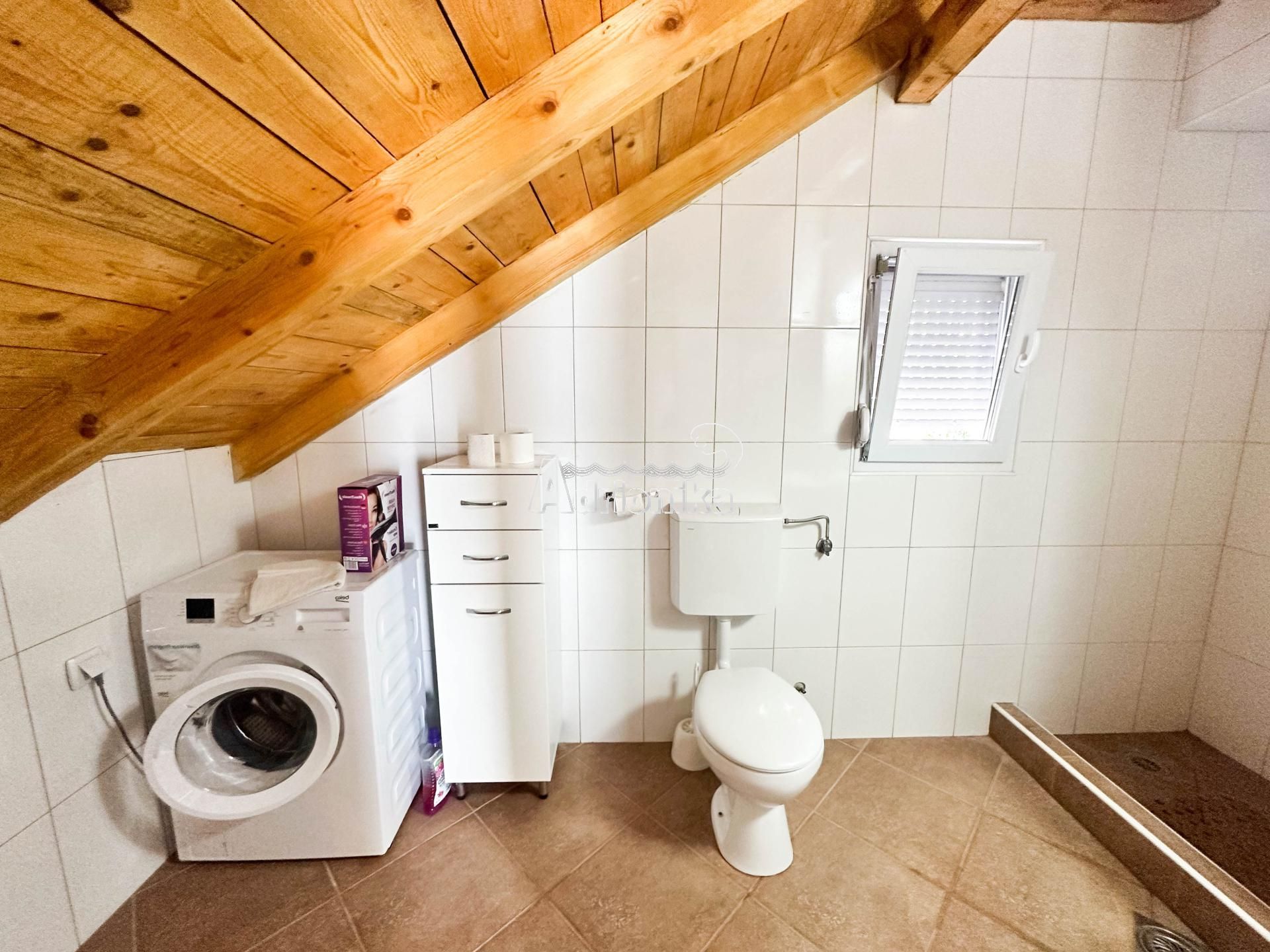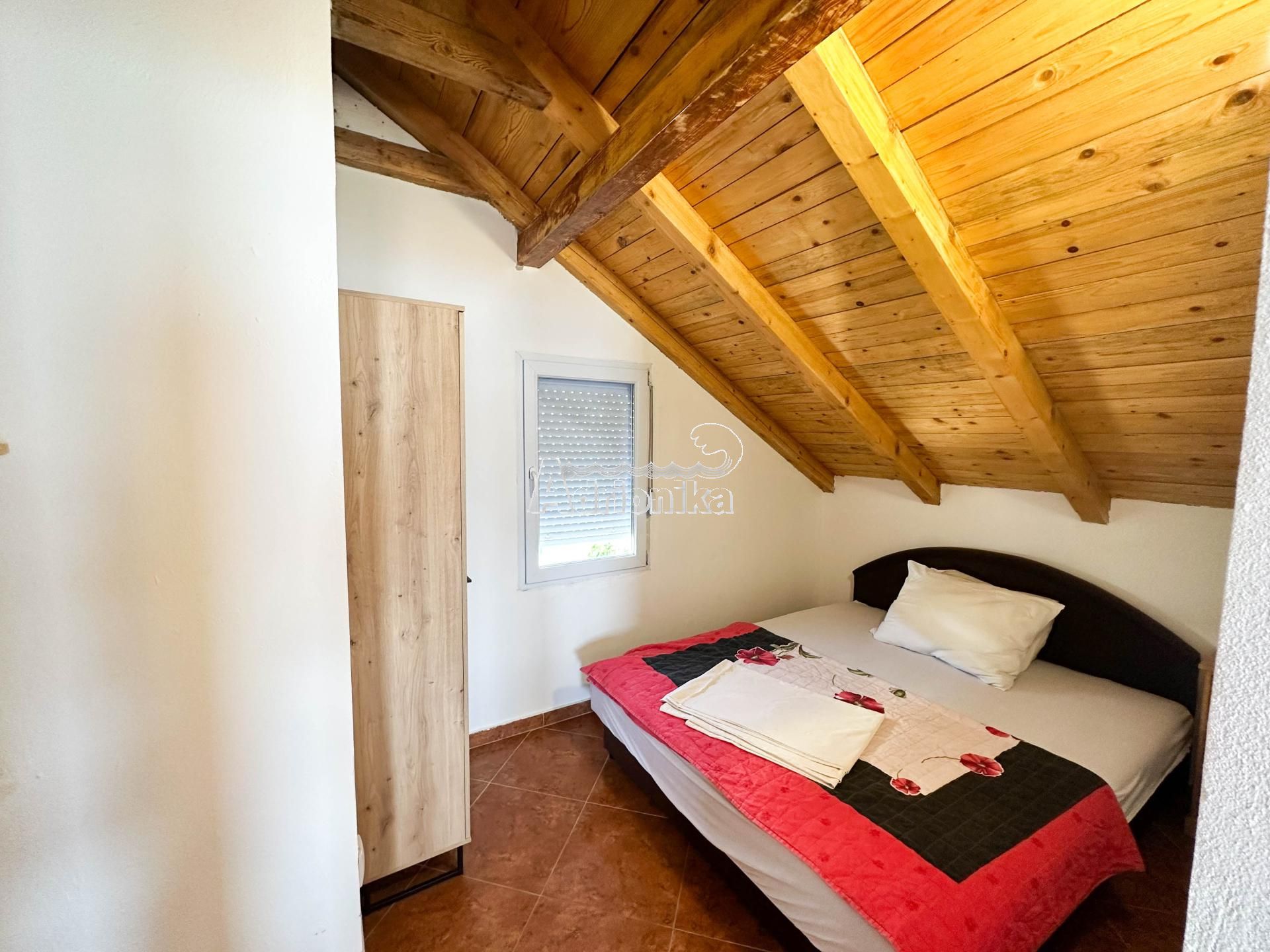 Второй этаж состоит из двух спален, двух ванных комнат, гостиной с кухней и большой террасы с прекрасным видом на Тиватский залив.