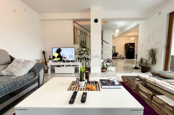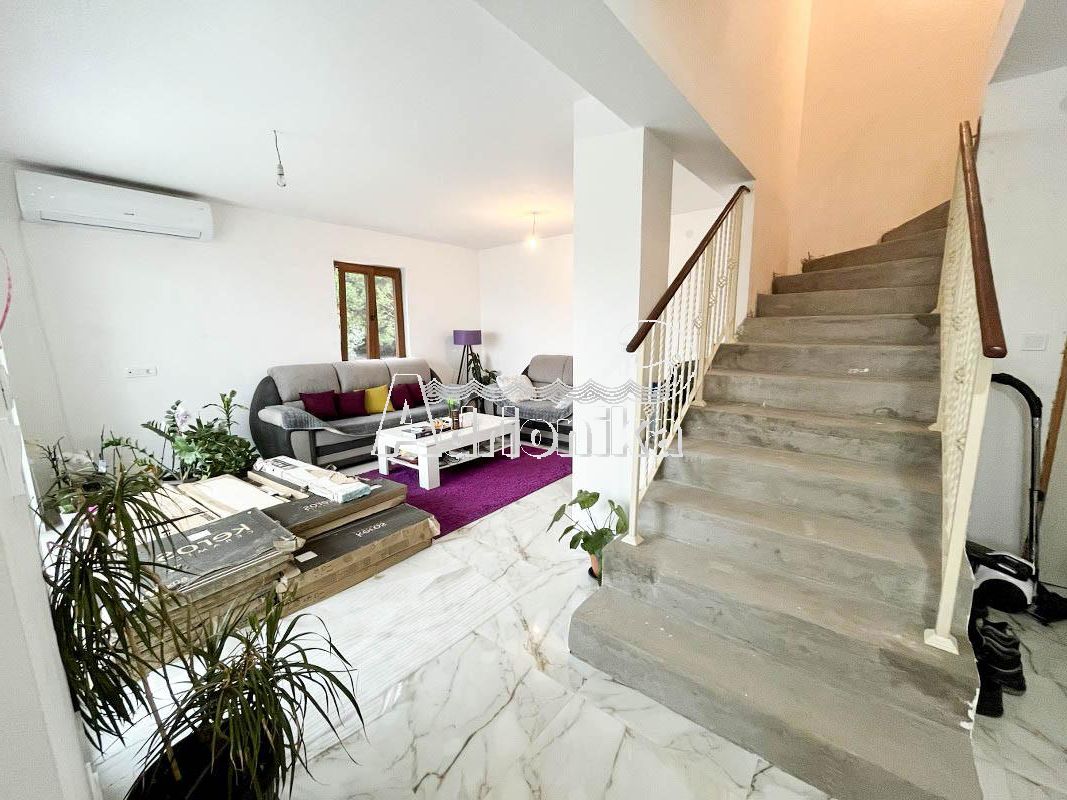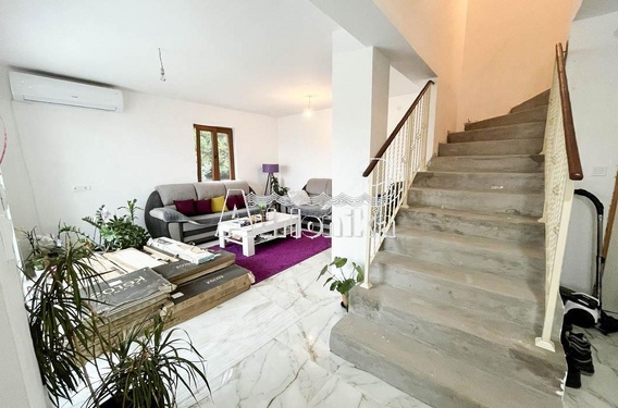 На участке общей площадью 1008 м2, естественно приподнятом и окруженном оливковой рощей, находится центрально расположенная двухэтажная вилла площадью 130м2 (65+65 м2) с отличным участком.