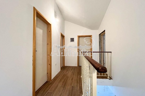 На первом этаже находится большая открытая гостиная с выходом на террасу с видом на море, кухня со столовой, ванная комната, прихожая, прихожая и внутренняя лестница на верхний уровень, с еще четырьмя спальнями и центральный санузел.