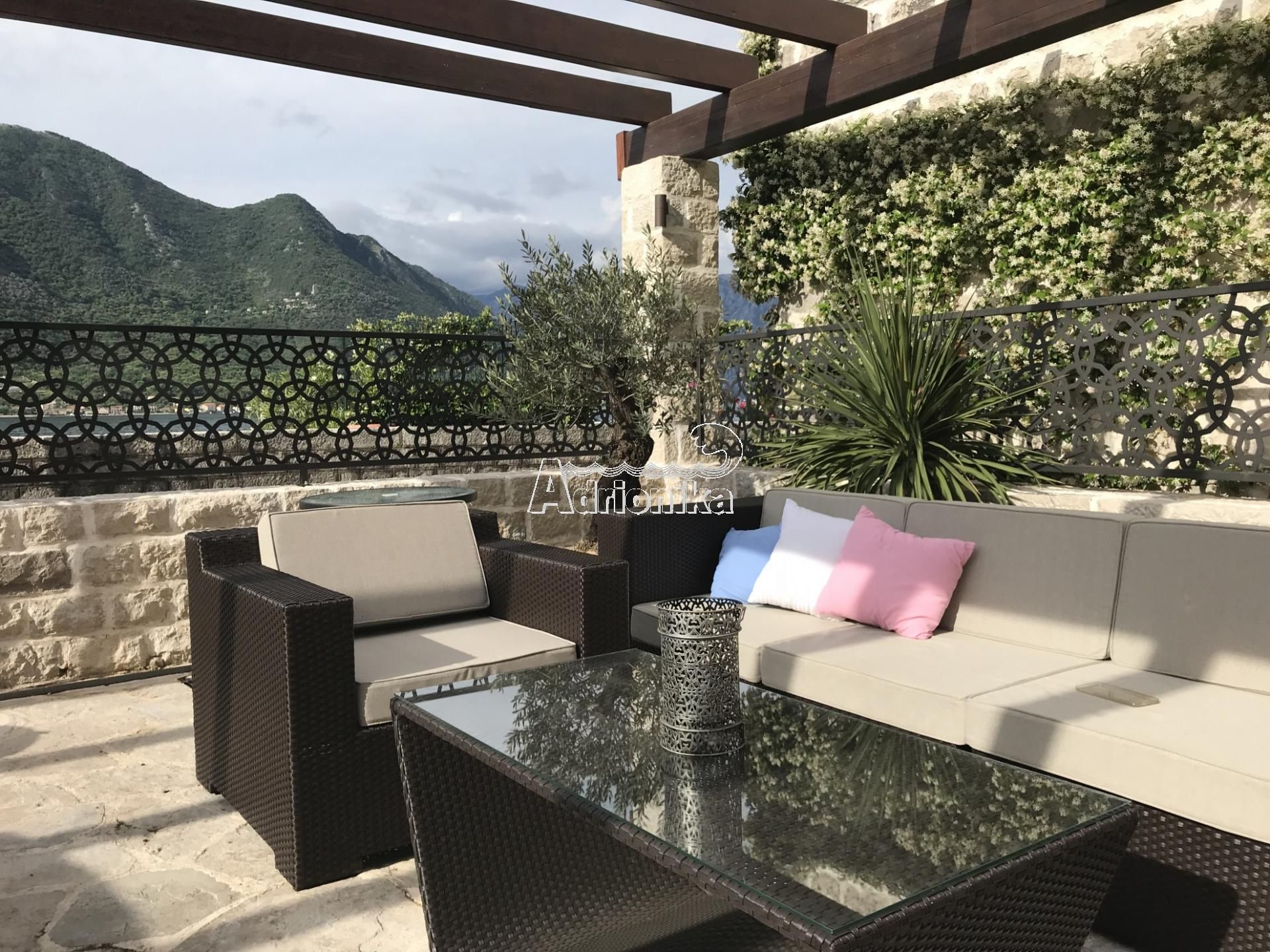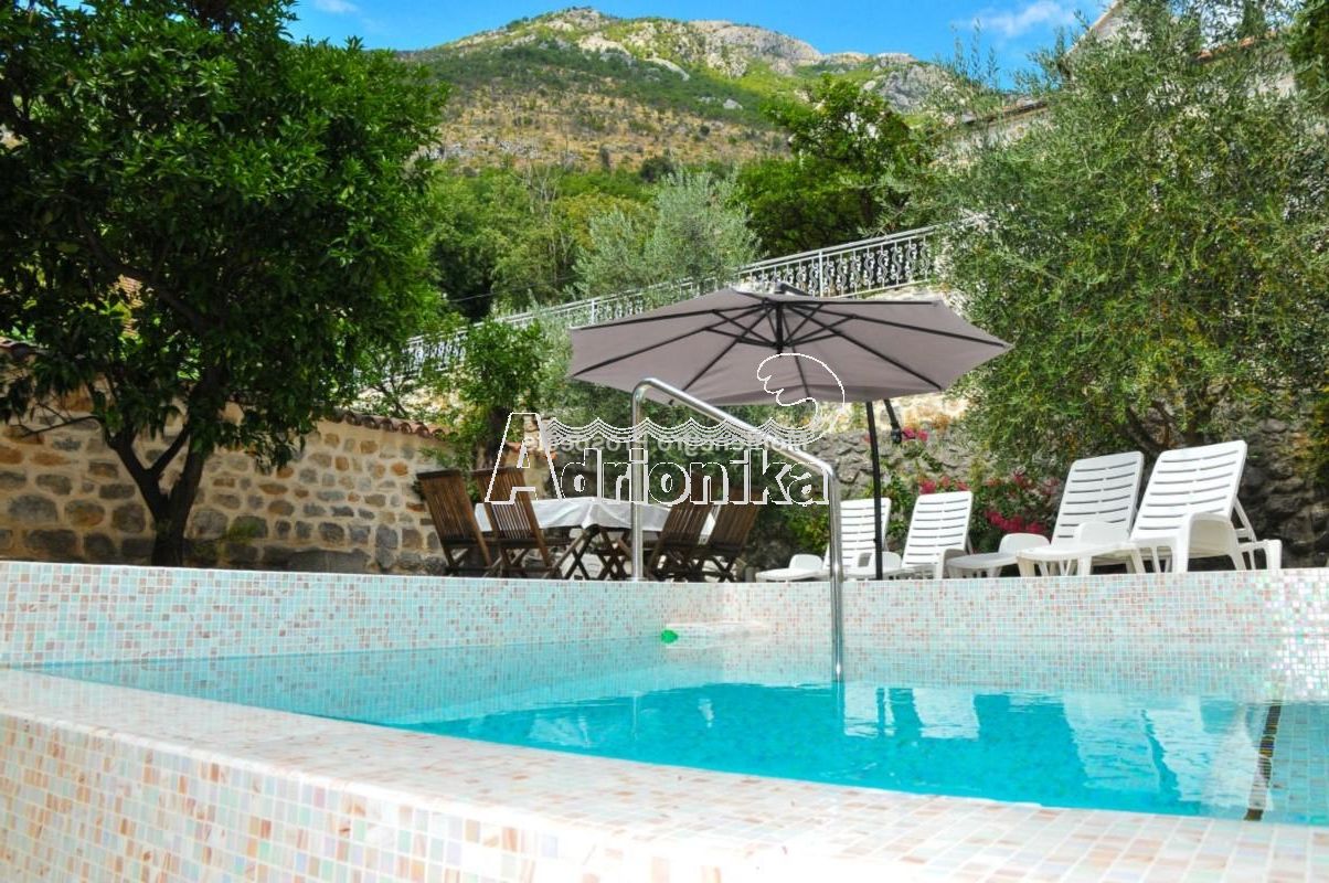 Трехэтажный каменный дом с бассейном в Перасте.