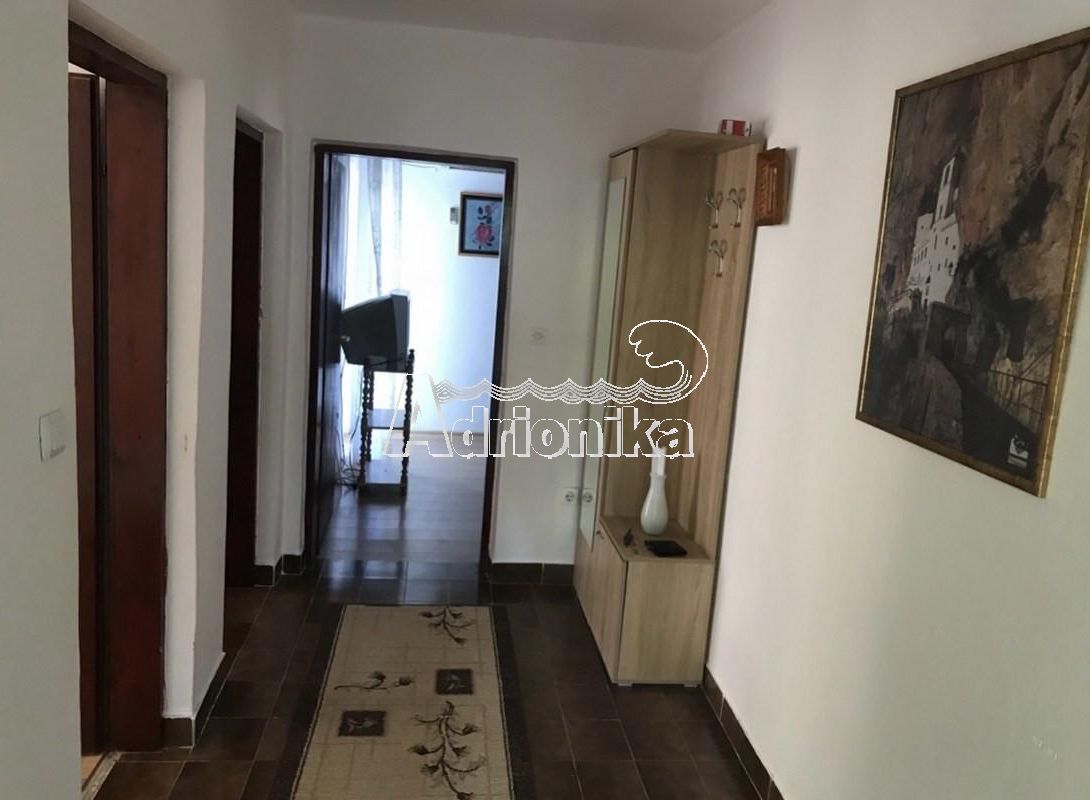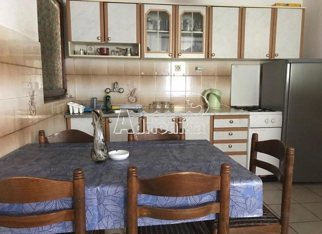 На каждом этаже три спальни, ванная, кухня, коридор и две террасы. Первый этаж меблирован и готов к проживанию, второй нужен ремонт, в настоящий момент воздвигнуты только стены. Вода и канализация городская. До моря по прямой 800м, без крутых горок.