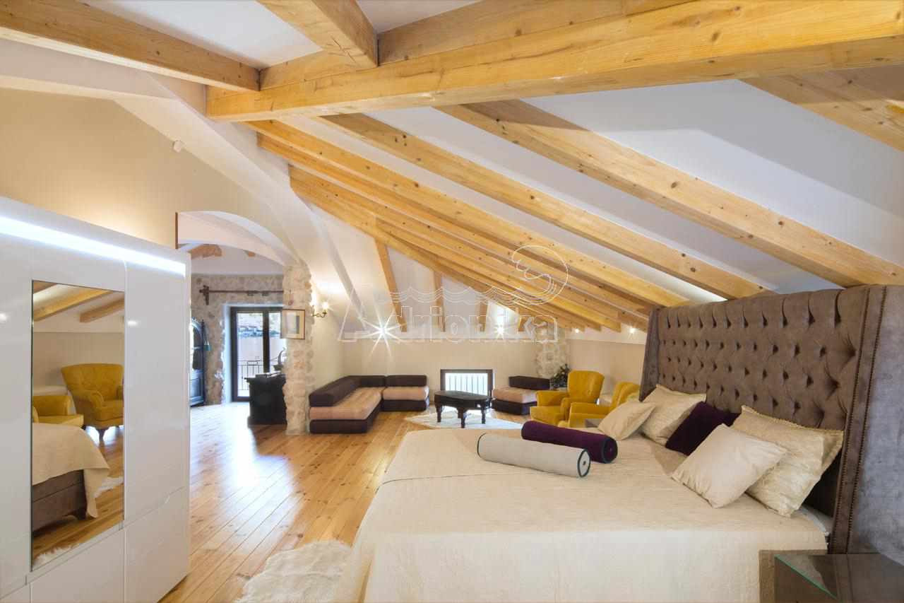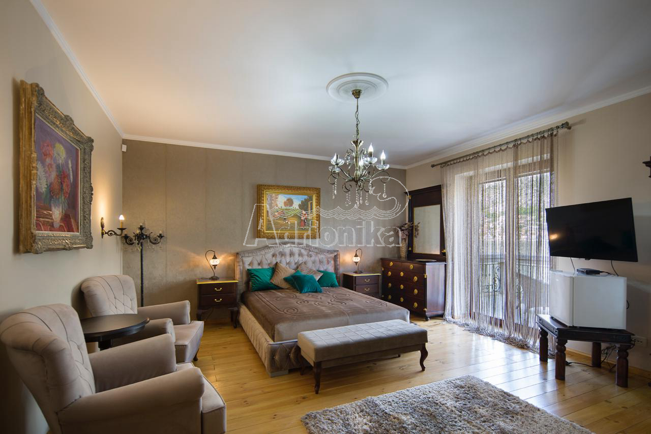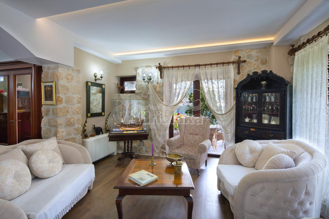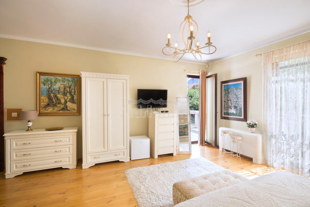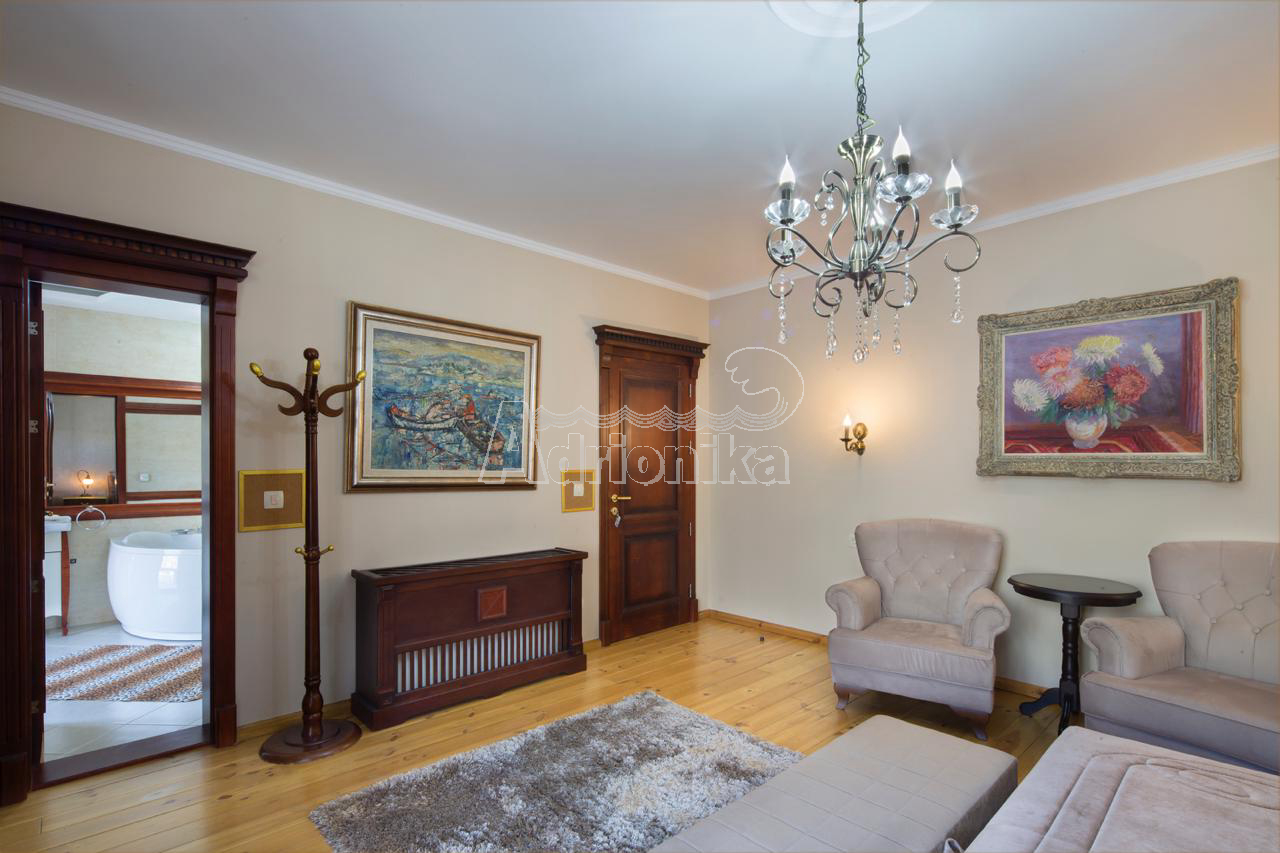 Продается вилла, которая расположена на участке площадью 910 м2. Площадь виллы 497 м2 + терраса. Есть 4 парковочных места. Дом состоит из подвала, цокольного этажа, первого этажа и второго этажа. В подвале есть сауна на 6 человек и помещение для винного погреба. На цокольном этаже столовая, кухня, гостиная, тренажерный зал и ванная комната. На первом этаже четыре спальни, каждая с ванной комнатой, две большие террасы - одна с видом на море, а другая у бассейна. На втором этаже гостиная с ТВ-залом, библиотекой, бильярдом и местом для игры в карты, а также ванная комната и гардеробная. В доме есть техническое помещение, содержащее насосы для бассейна, устройства для наблюдения, оборудование для подогрева и охлаждения. На первом этаже, а также во всех ванных комнатах пол с подогревом. В доме есть летняя кухня и бассейн 11 x 3 м, с дополнительной электрической подачей воды через тепловой насос. В доме антикварная мебель.