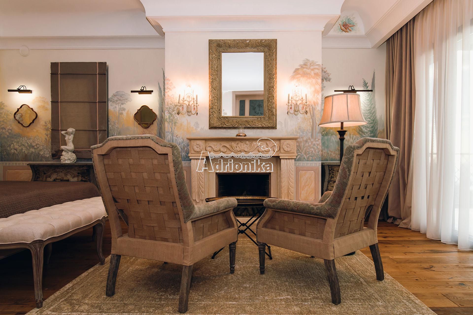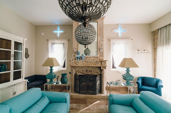 - Внутри вилла обставлена исключительно в традиционном стиле, а стены украшены оригинальными фресками, создающими атмосферу непревзойдённой красоты и культуры.