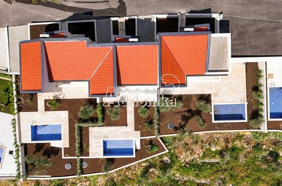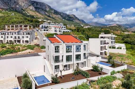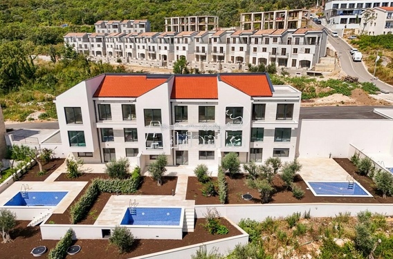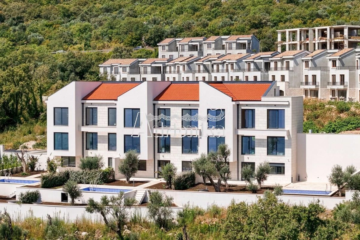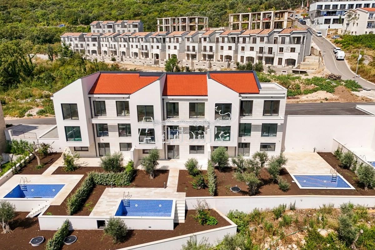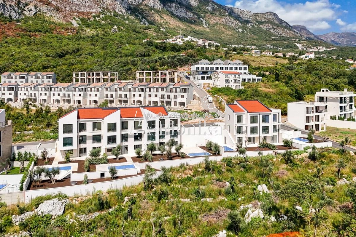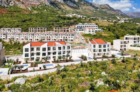 Режевичи, поселок Смоков Виенец, комплекс из 5 эксклюзивных таунхаусов в завершающей стадии строительства, с бассейнами, парковочными местами и открытым видом на море и природную средиземноморскую атмосферу.