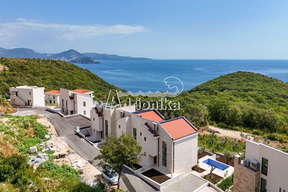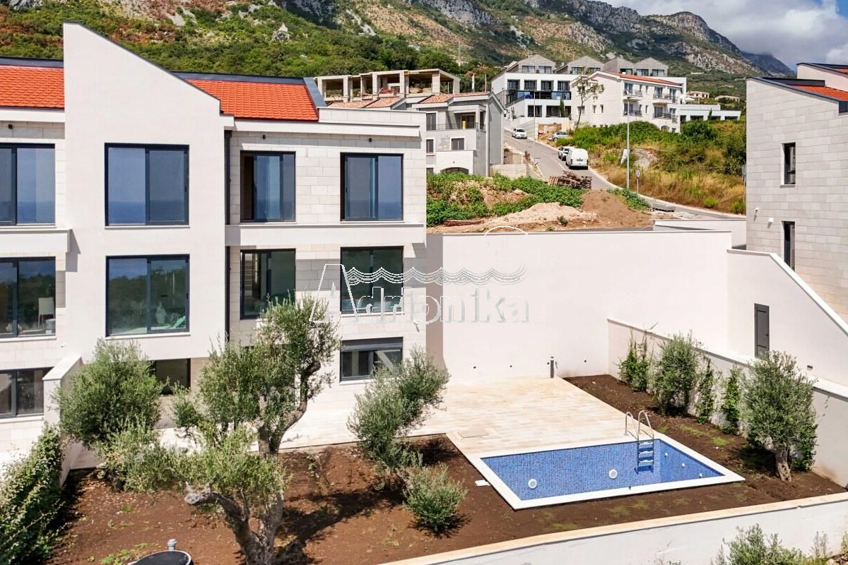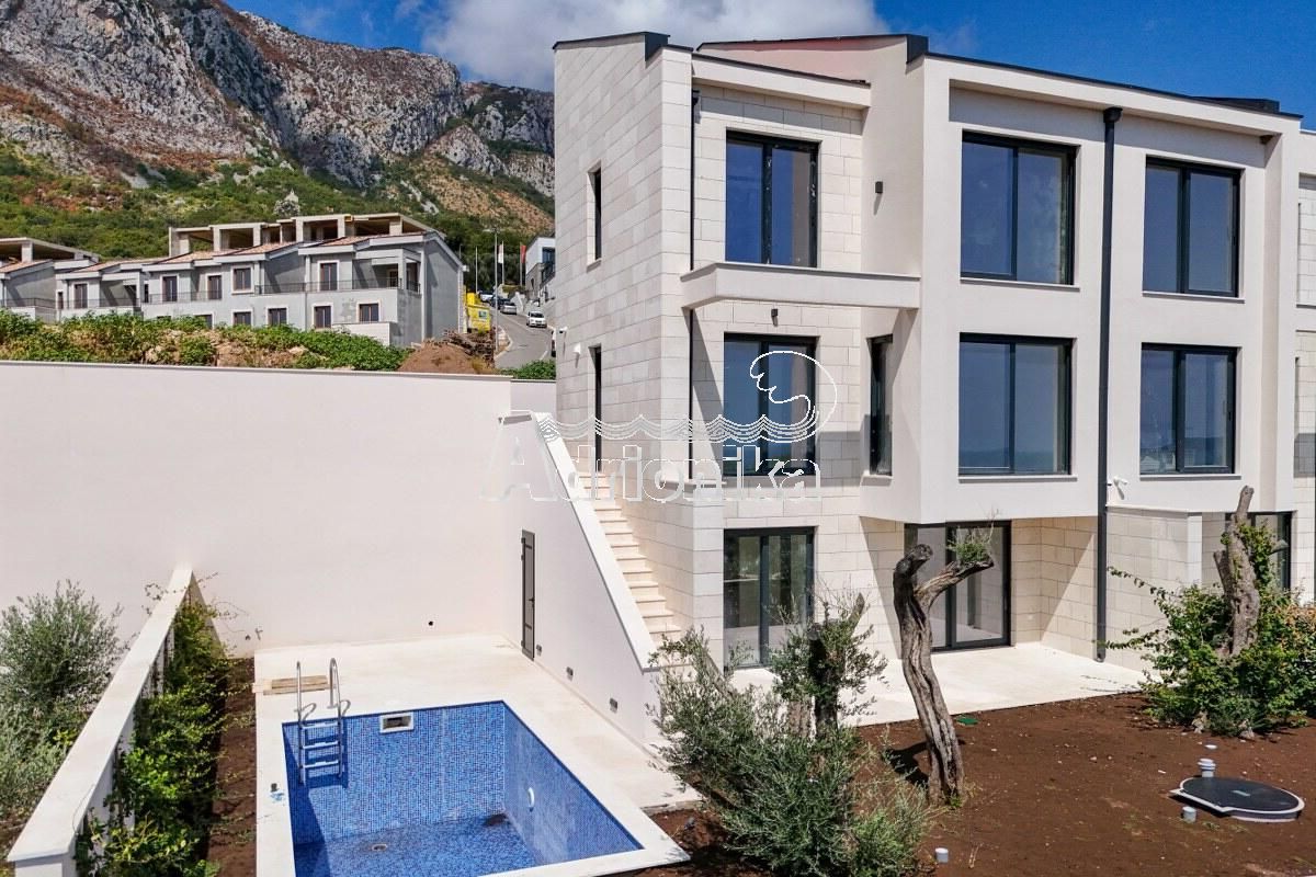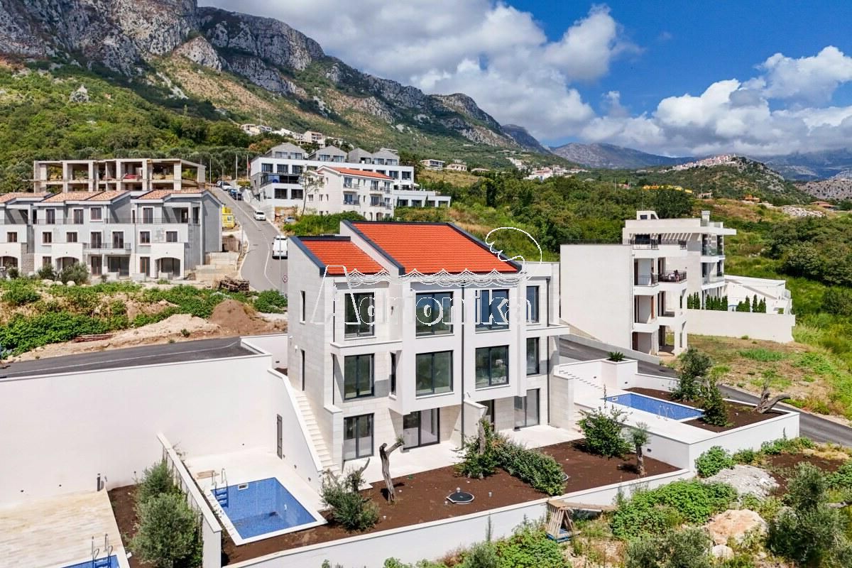 Режевичи, поселок Смоков Виенец, комплекс из 5 эксклюзивных таунхаусов в завершающей стадии строительства, с бассейнами, парковочными местами и открытым видом на море и природную средиземноморскую атмосферу.
