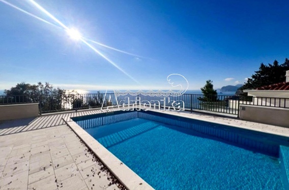 Бассейн с потрясающим панорамным видом на море.