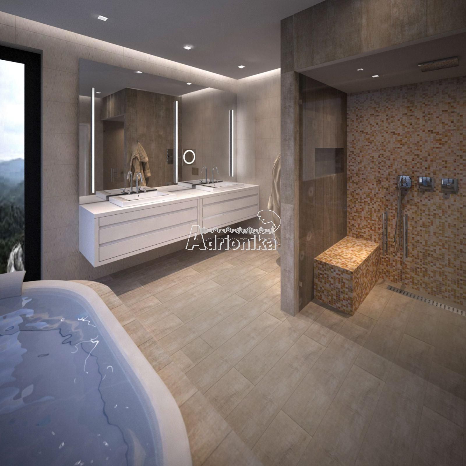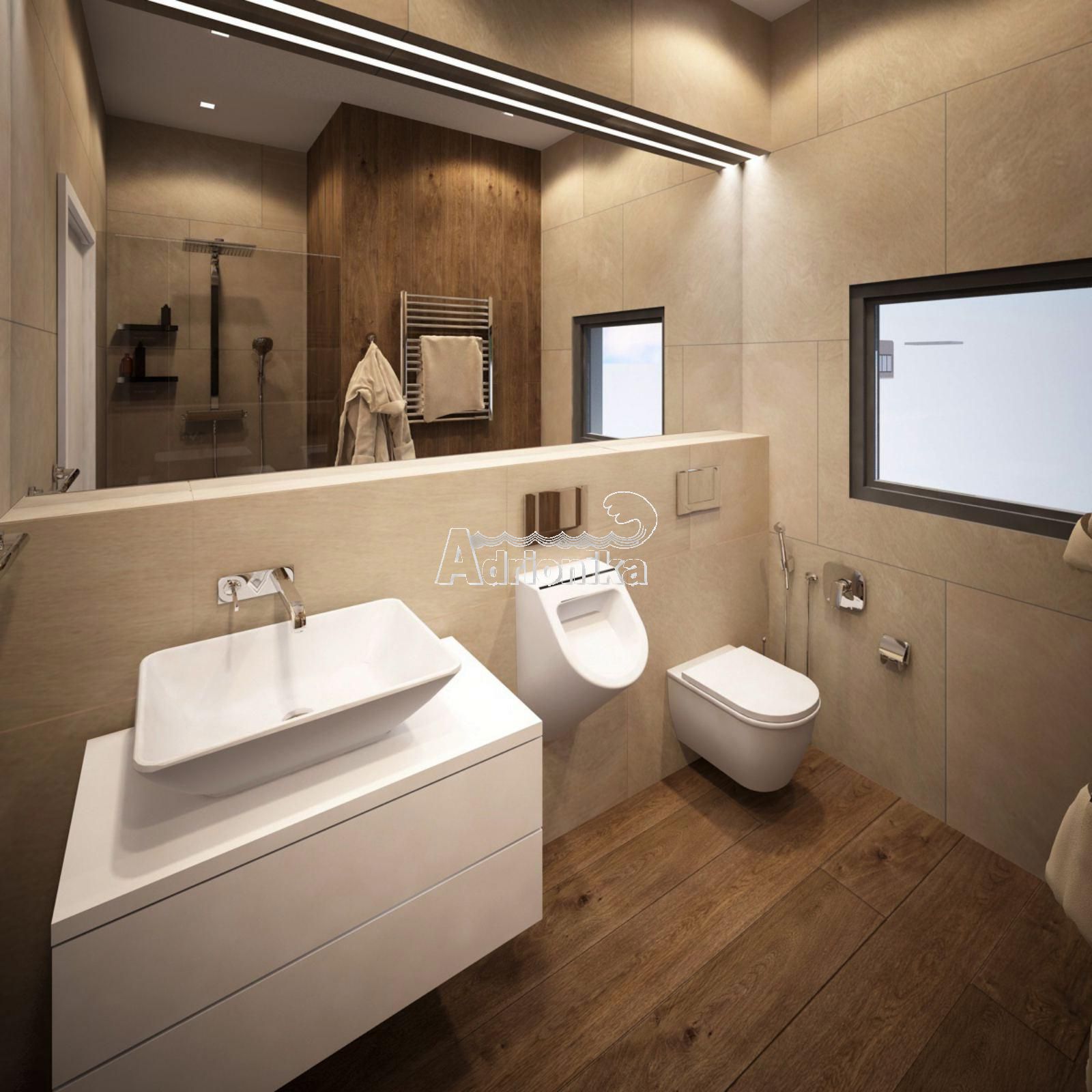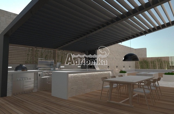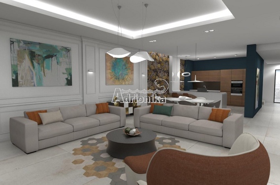 Около 410 м2 общей площади на трех жилых уровнях (без подземного гаража), из которых 360 м2 - внутренняя жилая площадь (3x120 м2) и еще 150 м2 - просторные панорамные террасы.