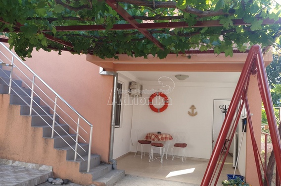 Продается таунхаус в Сутоморе. Дом состоит из 3 соединенных домов, 2 из которых продаются. Площадь таунхауса 120м2, из которых обе части по 60м2. Площадь двора 235м2, площадь участка 355м2. Обе части дома двухэтажные, а внешняя лестница ведет на второй этаж. План дома: В первой части таунхауса есть одна спальня, гостиная, кухня со столовой и ванная комната. Во второй части таунхауса расположены 4 квартиры, каждая из которых имеет отдельный санузел. В каждой из квартир есть двуспальная кровать и кондиционер, а на террасе есть летняя кухня. С террасы открывается вид на море. Во дворе есть место для гаража. Пляж находится в 600 м от дома, а в непосредственной близости есть магазины, кафе и рестораны.