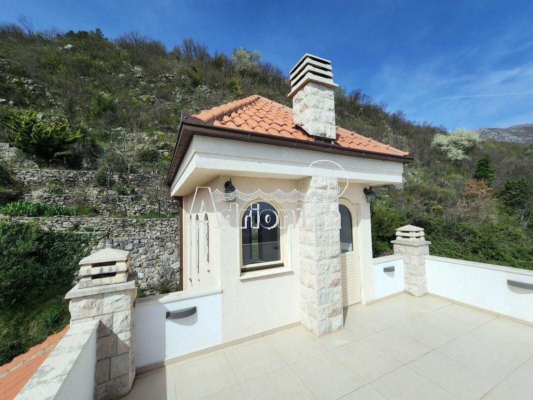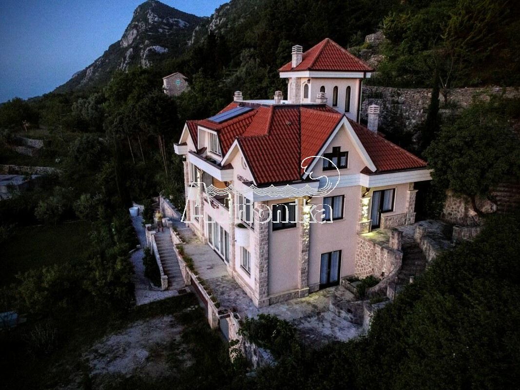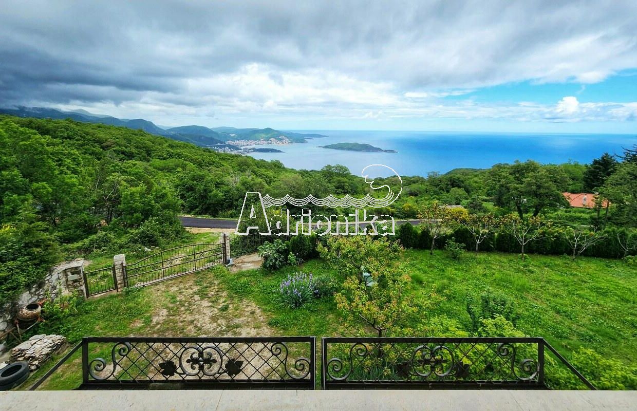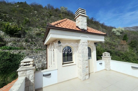 Новый высококлассный коттедж на престижной Будванской ривьере над Свети Стефаном. Панорамный вид на море и фантастические закаты.