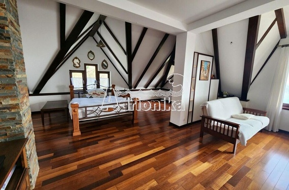 Третий этаж - спальня; огромный холл с домашним кинотеатром и камином; душевая + санузел