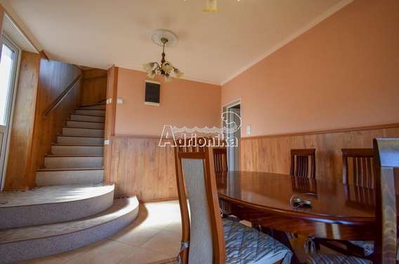 У дома есть не большой, красивый двор, одна часть которого отведена под парковку, а другая часть расположена перед домом, где устроена летняя кухня и небольшой сад. Все этажи соединены внутренней лестницей. Первый этаж состоит из небольшой гостиной, отдельной кухни, ванной комнаты и террасы.