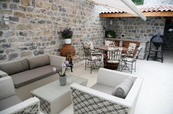 Дом имеет одну общую стену с другим домом, что характерно для Тивата и Котора. Занимает три уровня и состоит из трех спален, гостиной, кухни со столовой, двух ванных комнат и гостевого туалета. Все комнаты просторные и светлые, с большим количеством света. Дом сделан со вкусом и любовью.