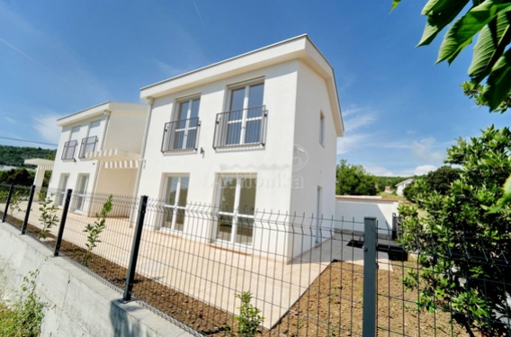 Продается новый дом, разделенный на две части, всего в 400м от моря, ниже основной дороги.