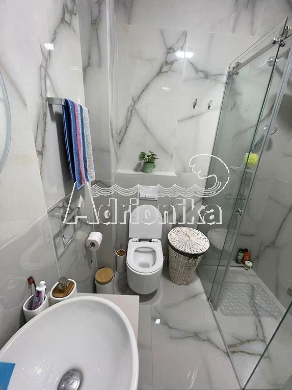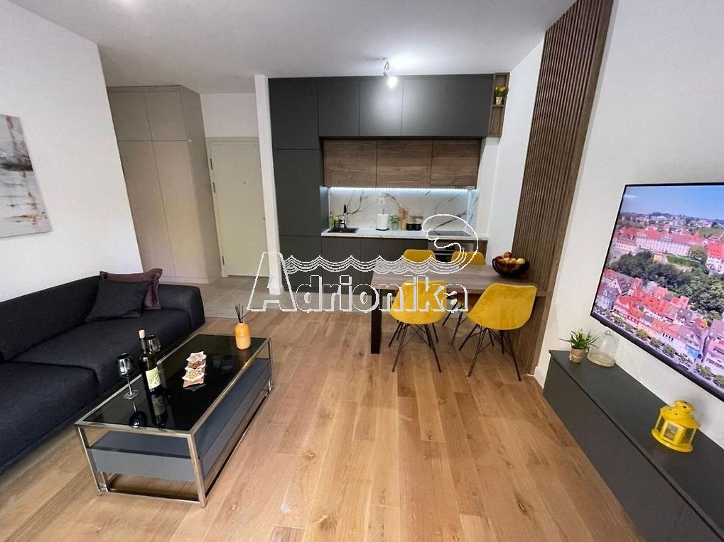 Продается однокомнатная квартира в Бечичи. Квартира расположена в строящемся комплексе, который включает в себя оздоровительный центр на крыше с бассейном, сауной и джакузи. Квартира расположена на 2 этаже и занимает площадь 39м2. Квартира полностью меблирована и оборудована. В нем есть гостиная, совмещенная с кухней и столовой, спальня, ванная комната с душем и просторная терраса, на которую можно попасть из обеих комнат. В гостиной есть кондиционер. В квартире есть спутниковое телевидение и интернет. Здание имеет частное парковочное место в гараже, расположенном на первом и втором уровнях под зданием. В шаговой доступности от квартиры расположены магазины, кафе, рестораны и автовокзал. Квартира находится всего в 500 м от моря.