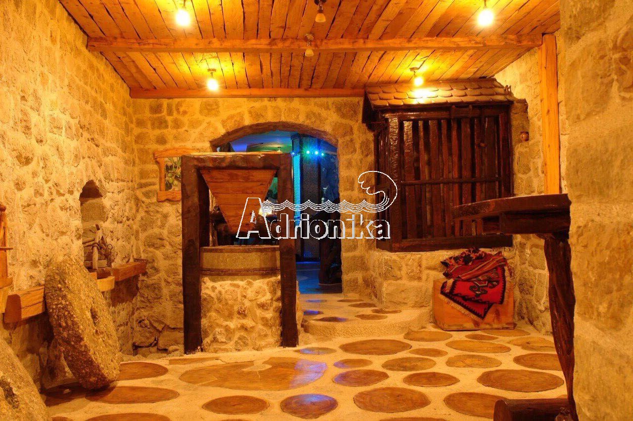В тихом пригороде города Будва Марковичи продается уникальный туристический комплекс, включающий в себя ресторан, винный погреб, небольшой ночной клуб, открытые каменные террасы, отлично подходящие для отдыха на свежем воздухе, парковку. Расстояние до моря составляет около 6 км. Общая площадь объекта составляет 746 м2, площадь участка – 1806 м2. Комплекс был построен в 2008 году. В ходе строительства использовались природные материалы: камень и дерево – что придало комплексу особенную уютную атмосферу. При этом стены имеют ширину 2 м, что позволяет сохранять внутри дома летом прохладу, а зимой тепло. Комплекс окружён большим количеством зелени, на его территории протекает река, спускающаяся с гор, расположены старая мельница, а также фонтаны, датируемые началом 20 в. В этом месте смешивается горный и морской воздух, делая пребывание в комплексе не только приятным, но и полезным. К объекту подведены городская вода и электричество, помещение оборудовано тёплыми полами. Объект обладает большим потенциалом: возможна надстройка ещё 3 этажей и мансарды, строительство бассейна. Комплекс прекрасно подходит для использования как рекреационного объекта.