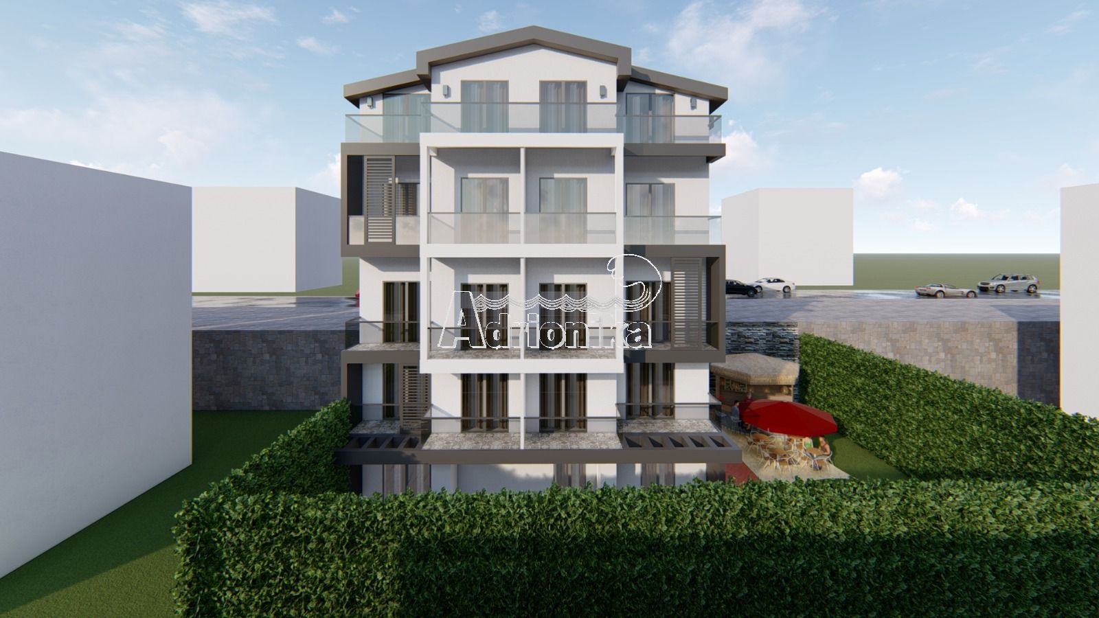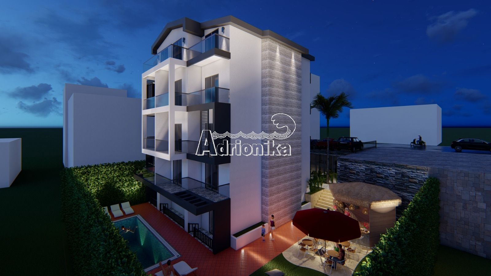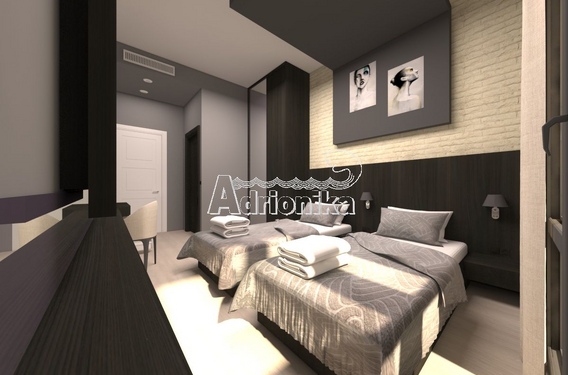 Строящийся отель в Будве. Общая площадь отеля составит около 800 м2. Отель будет иметь пять этажей и двадцать пять номеров площадью около 18 м2. Все номера будут оборудованы системой кондиционеров. На территории отеля также будет находиться ресторан, бассейн и парковка. Окончание строительства отеля планируется на конец 2021 года. Предоставляется возможность покупки отеля на этапе строительства. Расстояние до моря составляет 1 км.