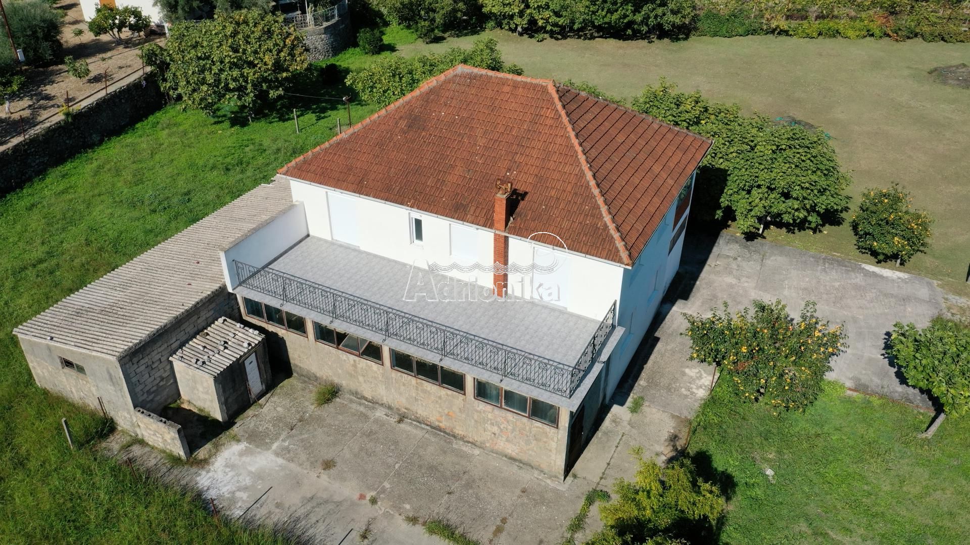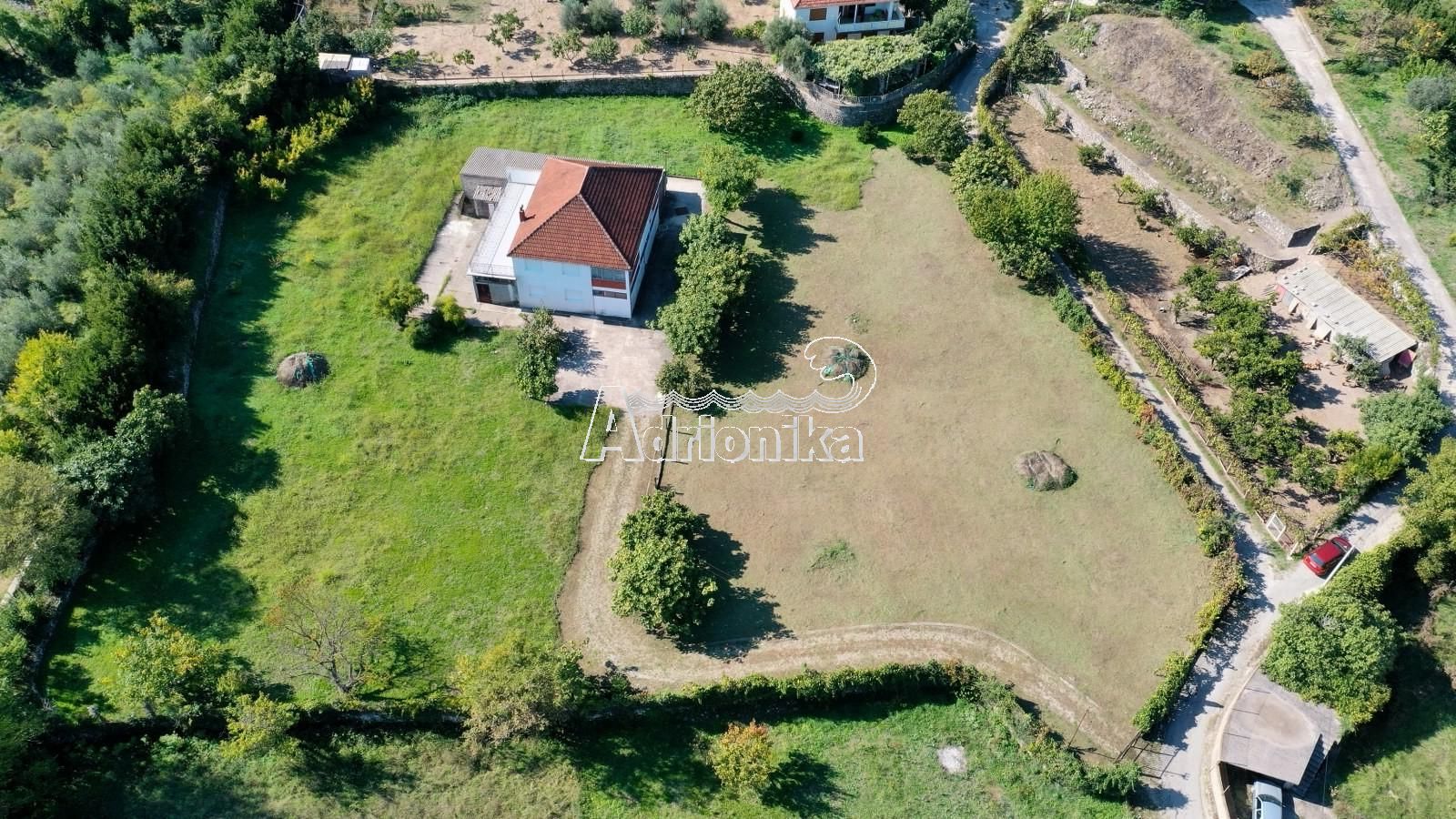 Площадь участка 5.453м2, площадь дома 130м2 и вспомогательное здание 52м2.