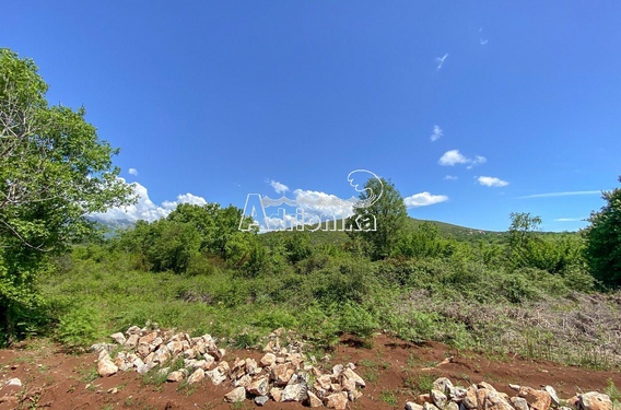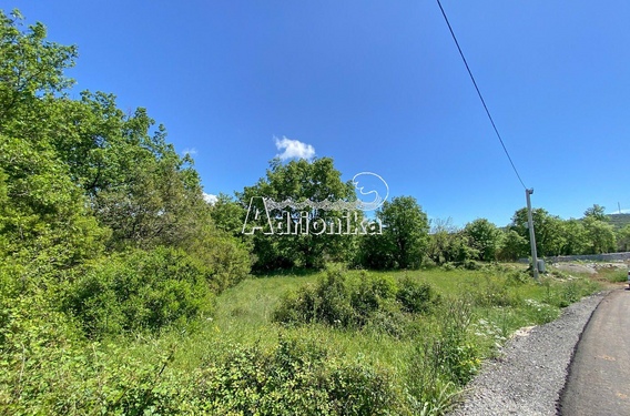 Участок вытянутой формы с выходом на асфальтированную дорогу. Часть участка под деревьями и кустарником, часть - поляна. С участка открывается красивый вид на горы.