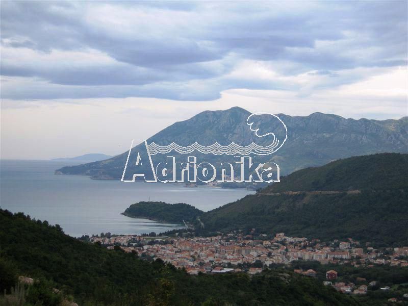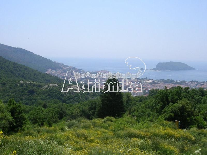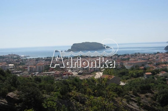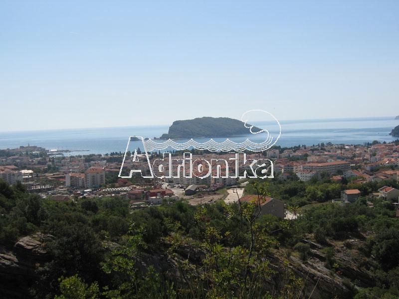 Панорамный вид на Будву, Старый город, остров Св. Стефана и море. К нижней части участка согласно урбанистическим планам примыкает разрабатываемая объездная магистраль вокруг Будвы.