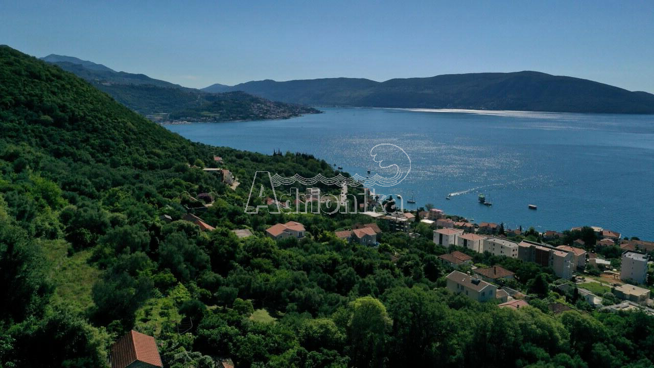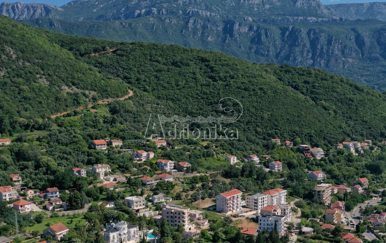 С этого просторного участка в спокойном поселке Кумбор, всего в 400 метрах от моря по прямой линии, открываются потрясающие виды на Адриатику.