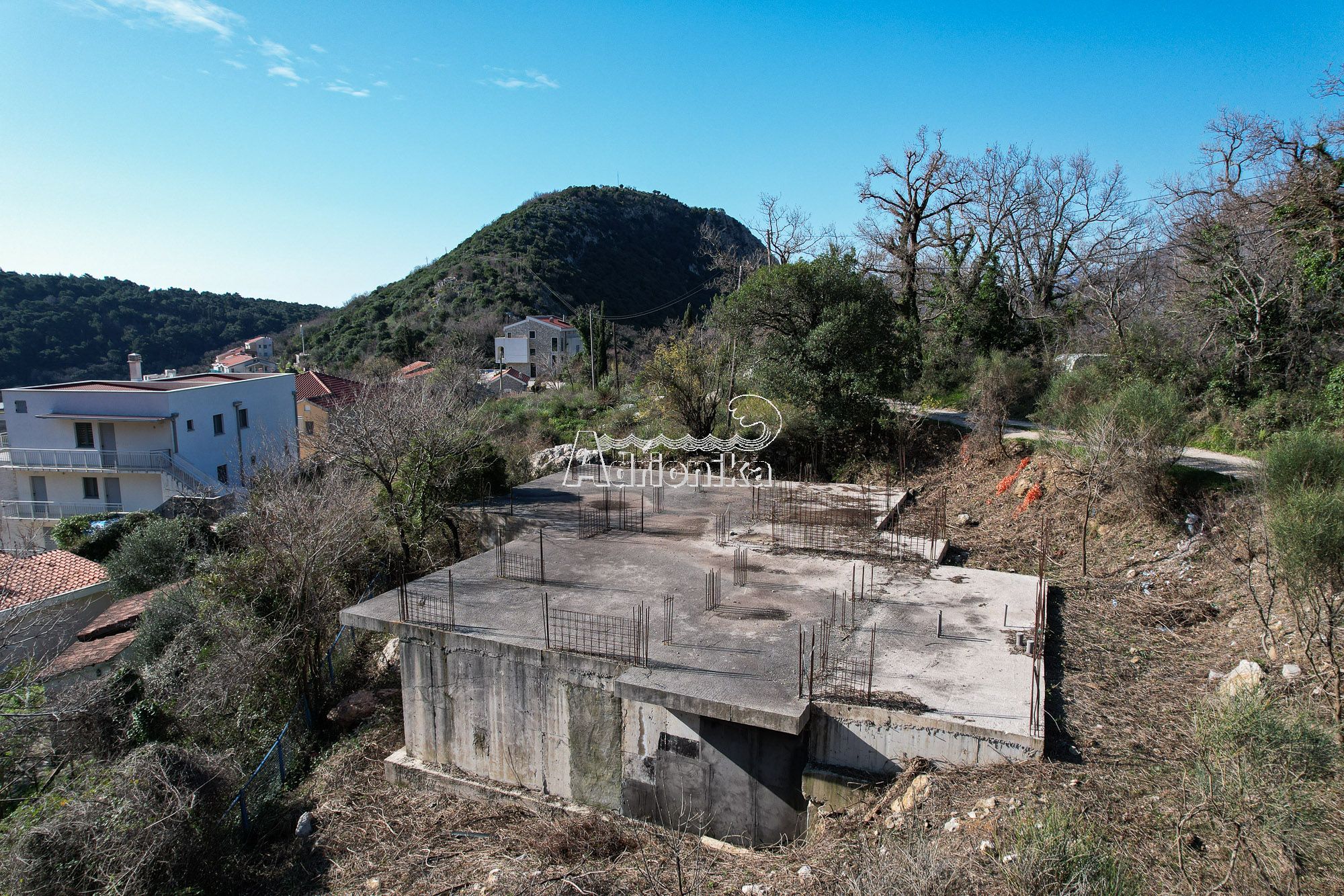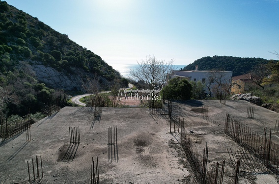 Инвестиционный участок с проектом и фундаментом в Петроваце с видом на море