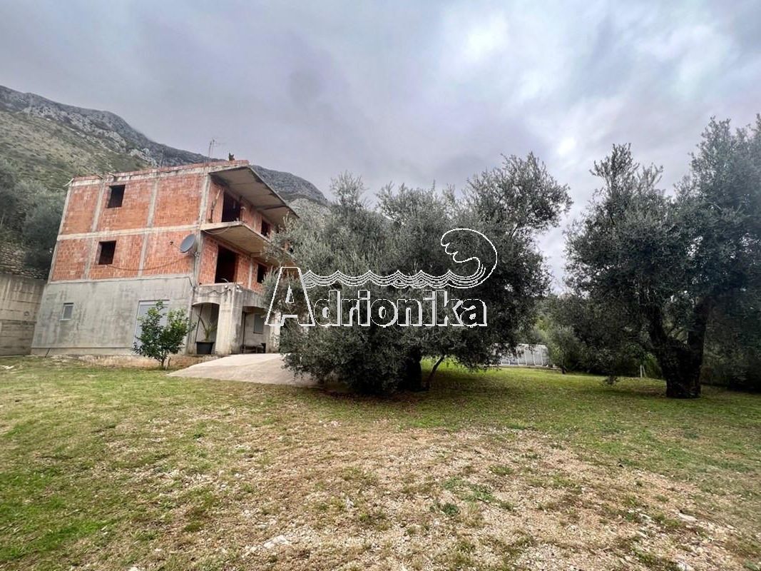 Урбанизированный участок с недостроенным просторным домом и оливковой рощей в элитном поселке Будванской Ривьеры - Река Режевичи.