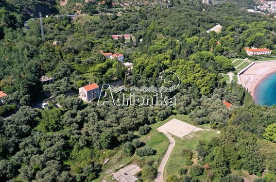 Он находится на пологом склоне и окружен лесом, с всей территории участка открывается вид на море и Свети-Стефан.