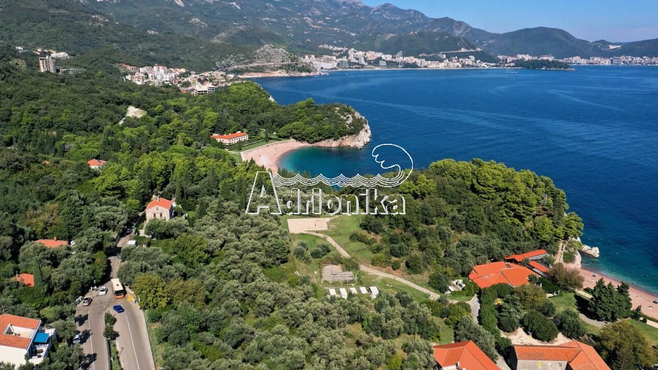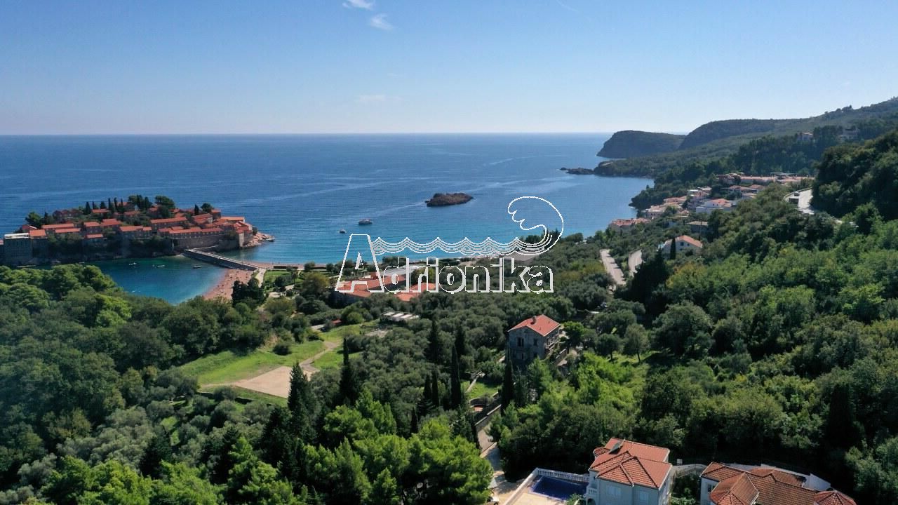 Продается участок общей площадью 1.091 м?, расположенный на действительно редкой и эксклюзивной локации — всего в нескольких сотнях метров от полуострова Свети-Стефан и известных пляжей.