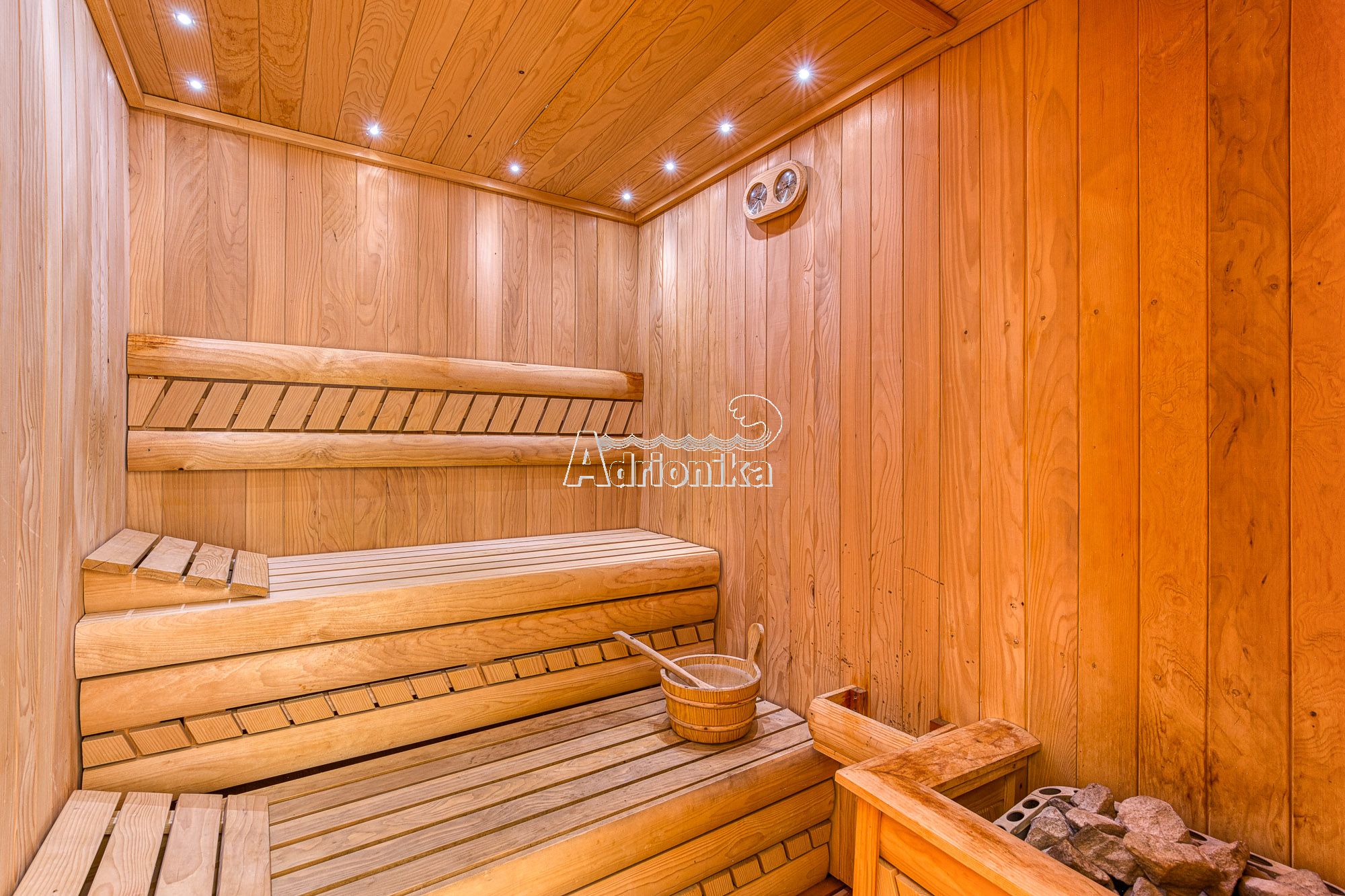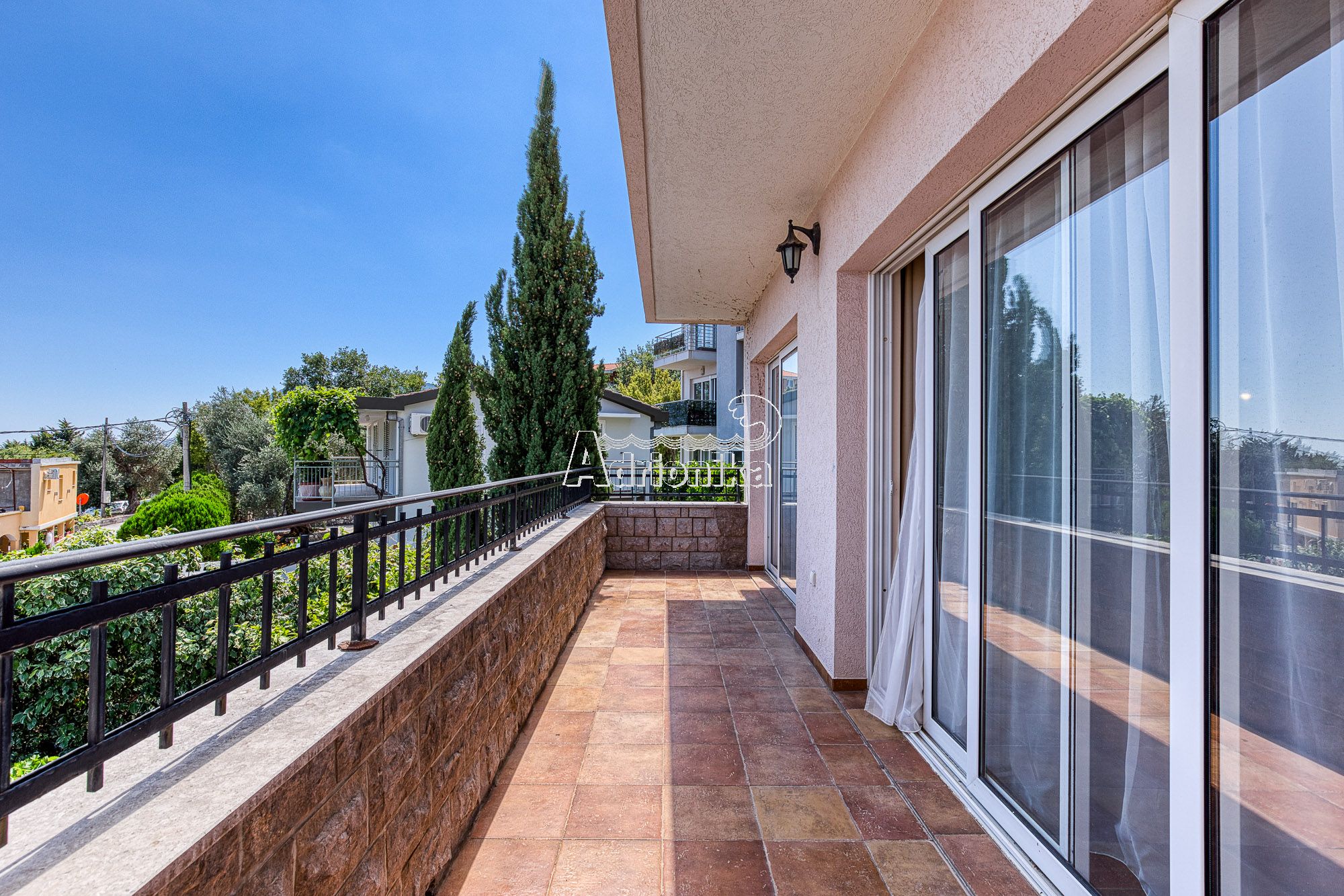 Продается вилла, общей площадью – 650 м2 расположенная на участке площадью – 450 м2. Расстояние до моря – 600 метров. Четырехэтажный дом + цокольный этаж (где находится гараж на две машины, винный погреб и две хозяйственные комнаты). - на первом этаже: сауна и большая гостиная с кухней. - на втором и третьем этажах, расположены: 4 спальные комнаты в каждой из которых имеется отдельная ванная комната. - на четвертом этаже Spa зона: массажный стол и тренажерный зал. На втором и четвертом этажах есть выход на террасы, с которых открывается прекрасный вид на черногорское побережье. В каждой комнате установлены: теплые полы, кондиционеры, охранная система. На участке растут фруктовые деревья (апельсин, гранат, инжир, мандарин, груша, яблоня и т.д.).