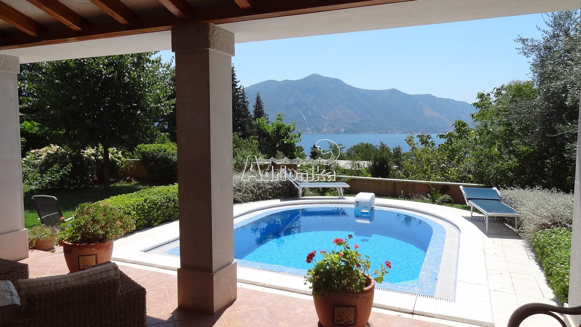 Вилла находится в 150 метрах от моря, имеет прекрасный вид на Которский залив.